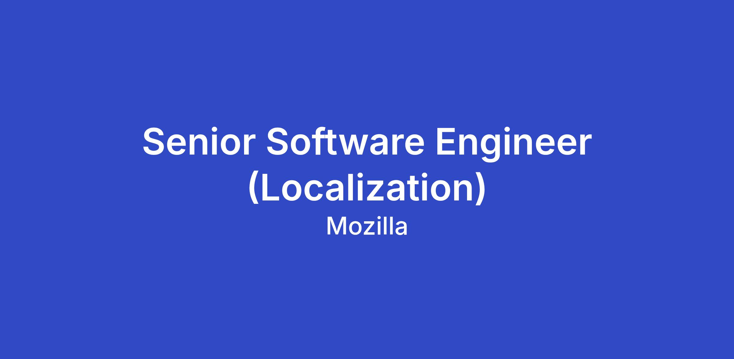 The Localization Team manages the infrastructure that powers localization across all Mozilla products and services, and supports our global community of volunteer localizers. As a Senior Engineer, you’ll contribute to a range of Mozilla localization projects and technologies — from open source libraries like moz-l10n to Pontoon, our Django-based Translation Management System. You’ll also work on internationalization features that shape the experience of Firefox and other Mozilla products, and have the opportunity to engage with development of standards such as Unicode MessageFormat and DOM Localization.