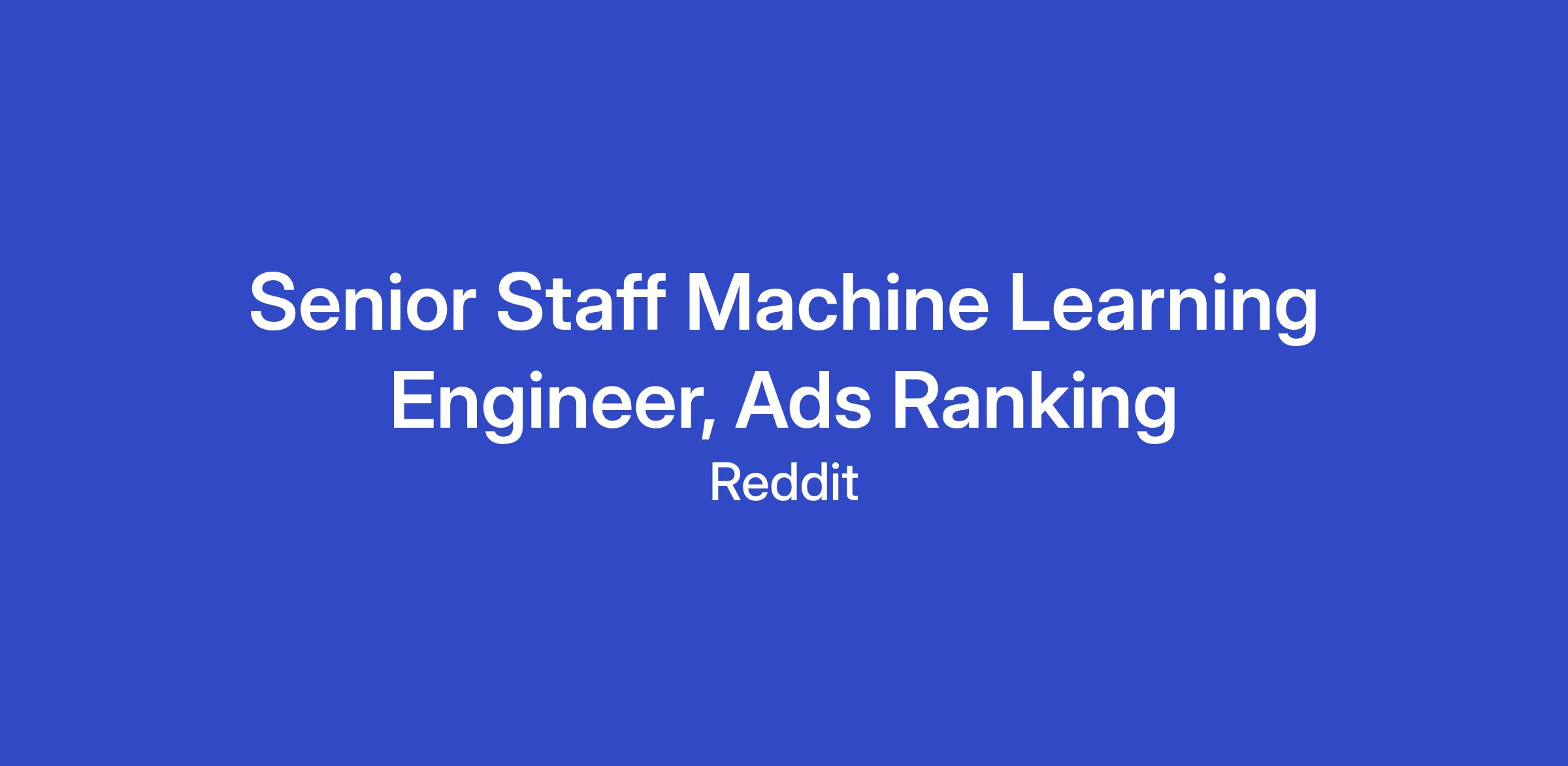 We’re looking for a Senior Staff Machine Learning Engineer to join Reddit’s Ads Ranking Org. This role is part of a broader effort to enhance Reddit’s ML-powered ad ranking systems through improved model architectures, contextual embeddings, and conversion-optimized modeling.