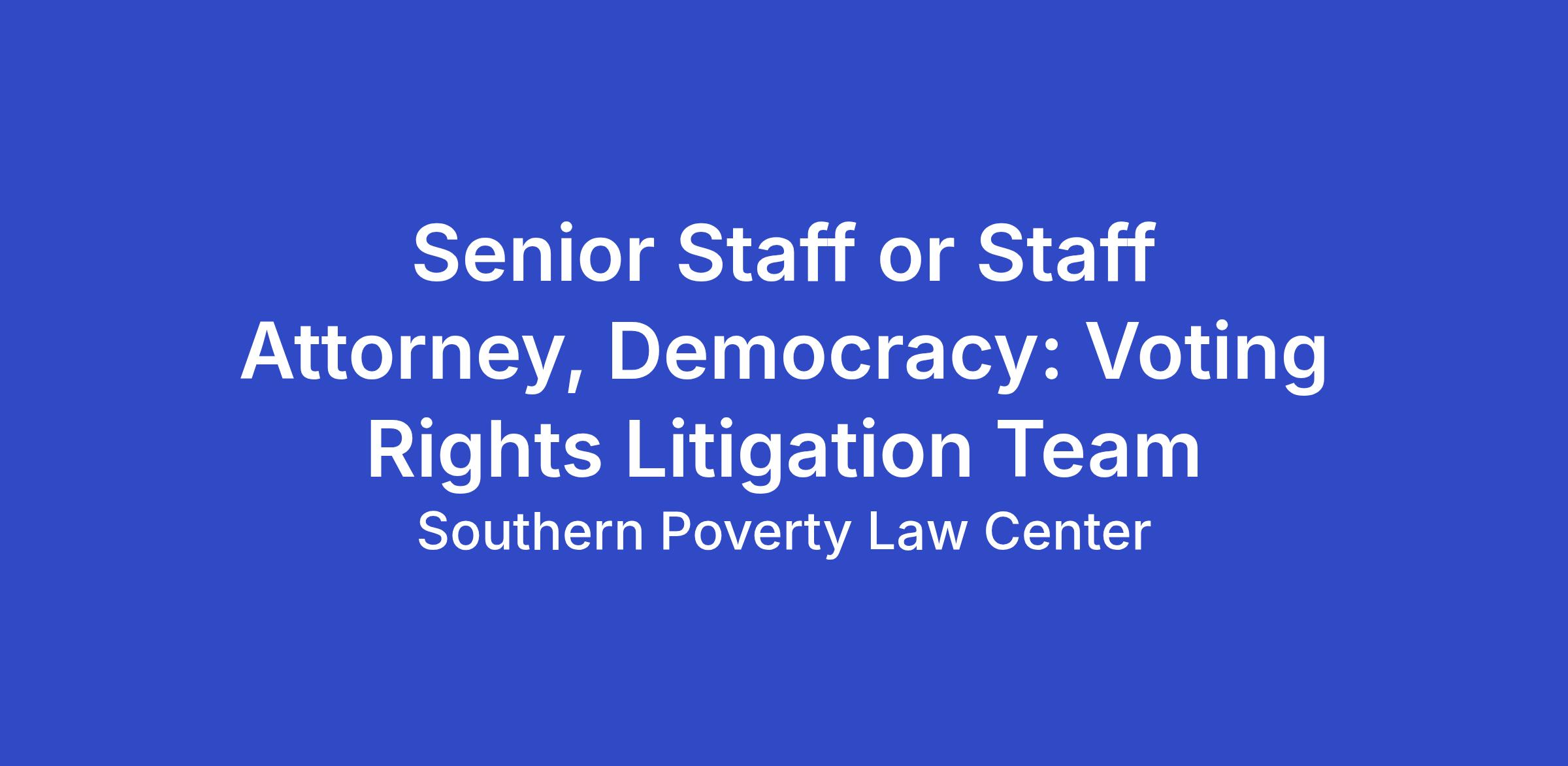 The Southern Poverty Law Center’s Democracy - Voting Rights Litigation Team (DVR) works across the Deep South in collaboration with community partners and organizers to engage and mobilize voters, restore voting rights to returning citizens, pursue electoral policy reforms, and bring litigation to challenge unconstitutional and discriminatory voting practices. Our efforts center on expanding access to the ballot; promoting fair redistricting; defending against racial gerrymandering and vote dilution; improving election administration; and community outreach and engagement. DVR’s current work includes a lawsuit challenging multiple provisions of SB 202, Georgia’s sweeping voter disenfranchisement law which threatens to disenfranchise Georgia voters, specifically voters of color; a lawsuit challenging Alabama’s state legislative maps as racial gerrymanders in violation of the U.S. Constitution; a lawsuit challenging the Mississippi Supreme Court’s 35-year-old districting plan, which denies Black voters a fair opportunity to elect candidate of their choice; and a lawsuit challenging Alabama’s failure to make its absentee ballot system accessible to blind and print-disabled individuals. We also engage regularly in public education, election monitoring, and other legal advocacy work across the Deep South.