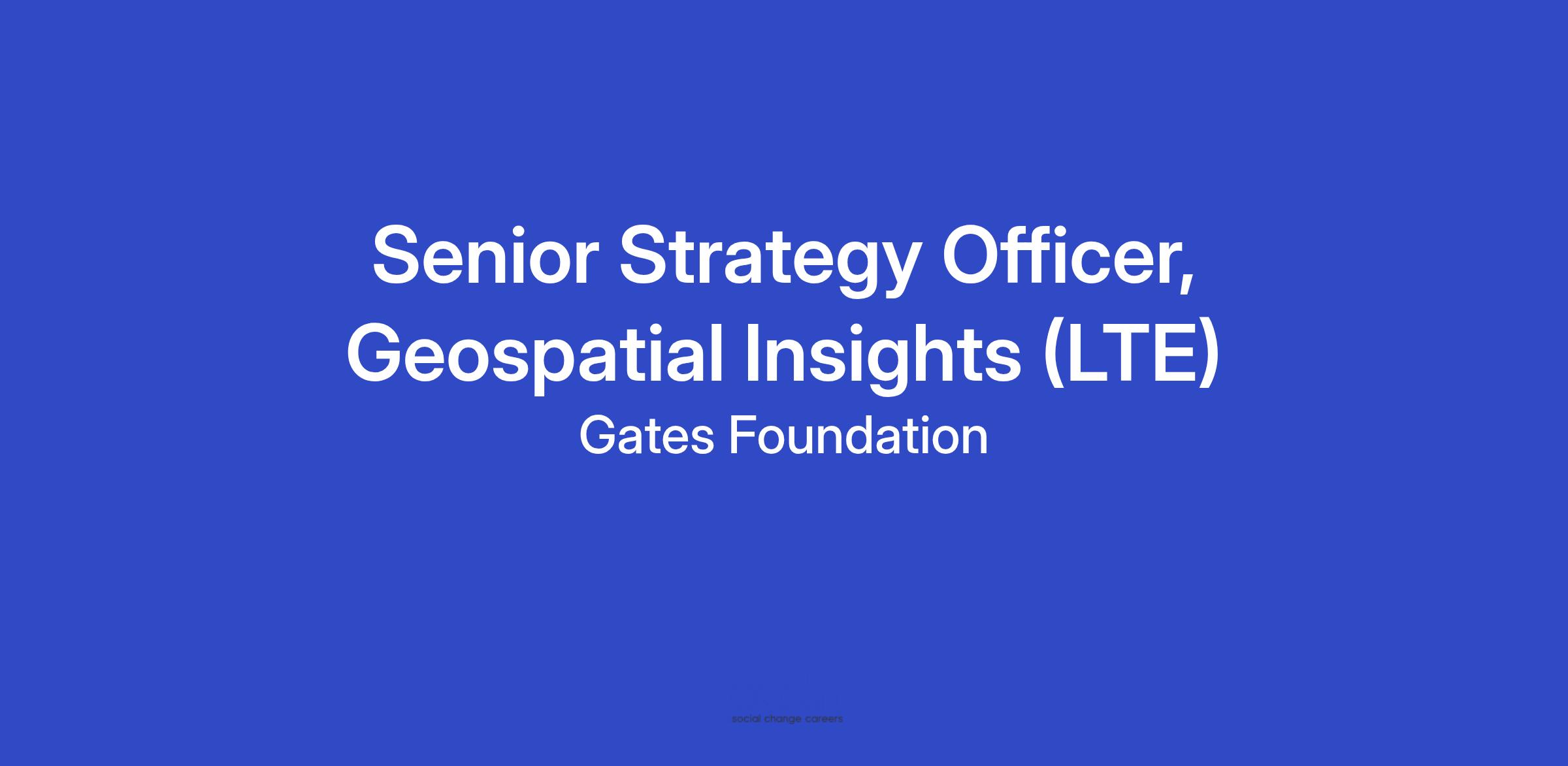 The Senior Strategy Officer (SSO), Special Initiatives is a 11-month LTE position, providing parental leave coverage to the Special Initiatives team in the Global Development Office of the President. This role will lead our cross-cutting Geospatial Insights body of work, working collaboratively across the foundation to refine the strategic vision and approach of our portfolio of investments focused on geospatial data and location-based analytics. This is a small portfolio of investments, focused at both the global level, as well as on specific country implementation efforts, particularly in Nigeria and DRC. The role will bridge geospatial science, data strategy development & implementation, grant management, and internal & external partner engagement, to ensure location insights accelerate health, economic development and equity outcomes in low-resource settings.