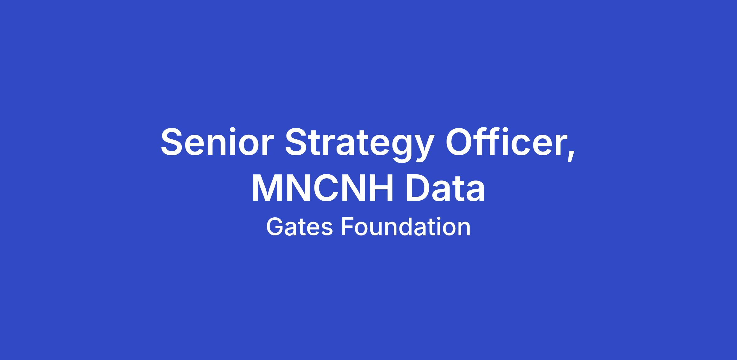 The Senior Strategy Officer, MNCNH Data (SSO), plays a critical support role in helping the Maternal, Newborn, Child Nutrition & Health (MNCNH) team translate data into actionable strategy, clear communications, and decision-support tools. These data-led insights help inform our strategic approach to accelerate product development, introduction, and country impact. Reporting to the Deputy Director, Epidemiology, Surveillance & Data, the officer will contribute to the team’s measurement and learning efforts through project management of data initiative efforts, data synthesis, curation of analytic outputs for visualization, and distillation of insights into compelling presentations and written products for internal and external audiences.