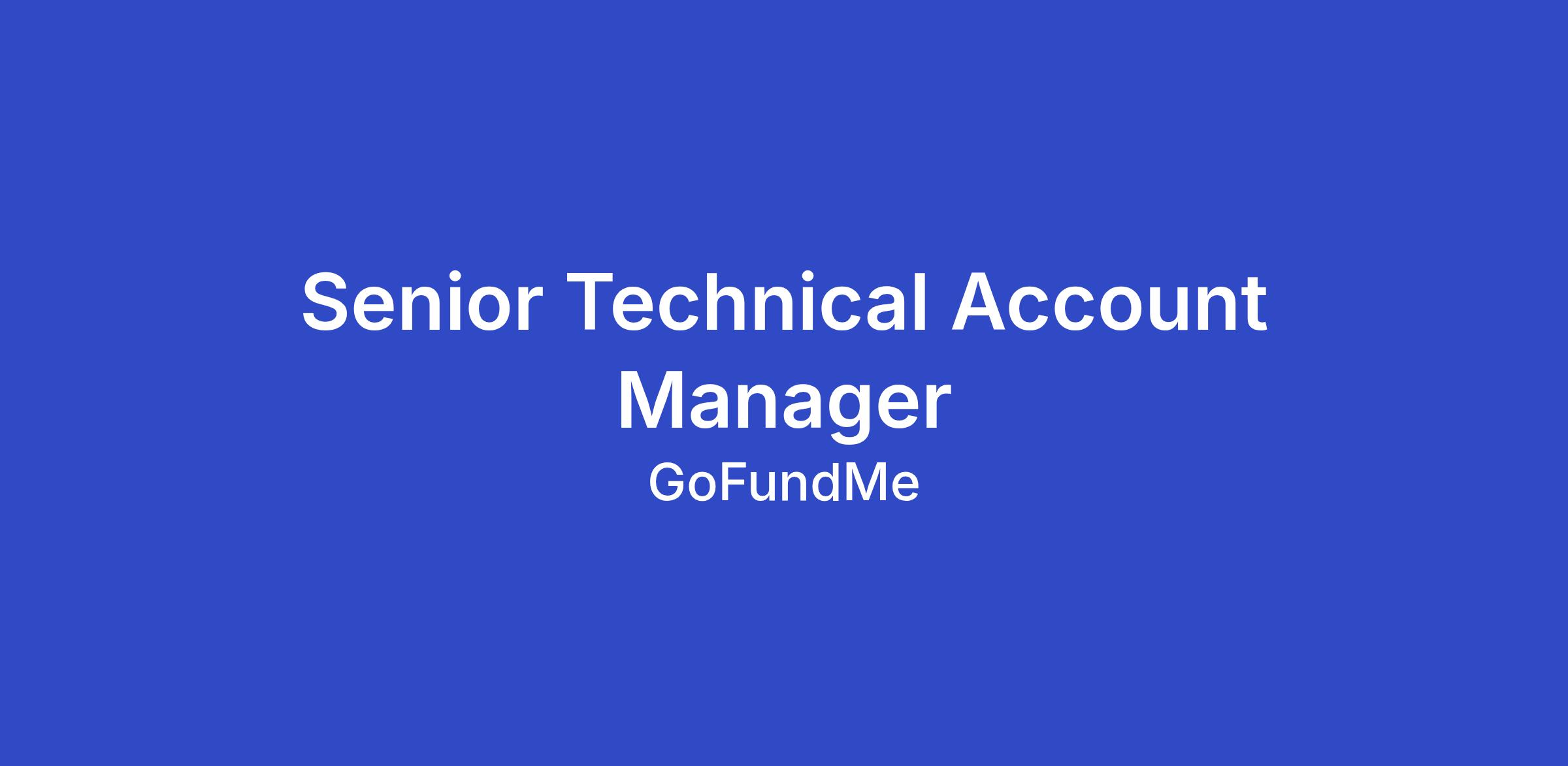 Join us! The GoFundMe Pro team is searching for our next Senior Technical Account Management (TAMs) to support the execution, adoption, and operational success of our Enterprise customers. The Senior TAM is a customer-facing expert responsible for driving the adoption of GoFundMe platform capabilities, managing operational timelines, coordinating cross-functional dependencies, and ensuring nonprofits achieve meaningful results on our platform. As part of the Enterprise pod model, TAMs work closely with Strategic Account Managers to deliver a world-class customer experience that drives GDV, conversion, and value.