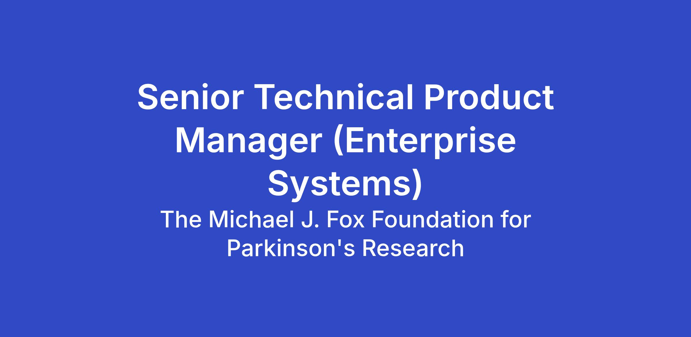 The Michael J. Fox Foundation for Parkinson’s Research (“the Foundation”) is seeking top talent for its Senior Technical Product Manager (Enterprise Systems). Reporting to the Director of Technical Product Management, this position shapes and executes a product vision and roadmap for several enterprise systems in partnership with stakeholders. Leveraging a variety of skills, this role helps with clarifying and understanding the strategy of our People and Financial focused product mixes and will primarily manage the execution and ongoing prioritization of relevant project work. This role also focuses on forging strong partnerships with other internal departments and external suppliers.
