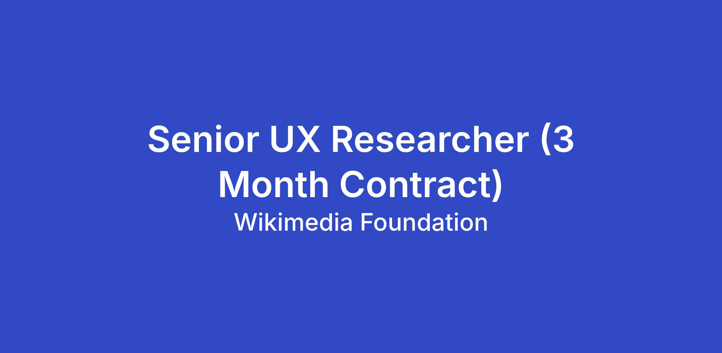 The Wikimedia Foundation is looking for an experienced mixed-method UX researcher (3-month contract) to extend our capabilities for doing qualitative and quantitative research to understand the experiences and needs of the humans who use and contribute to Wikipedia and the Wikimedia projects. As part of the Research group, the UX Research team leads UX research with the goal to improve user experiences and increase global usage.