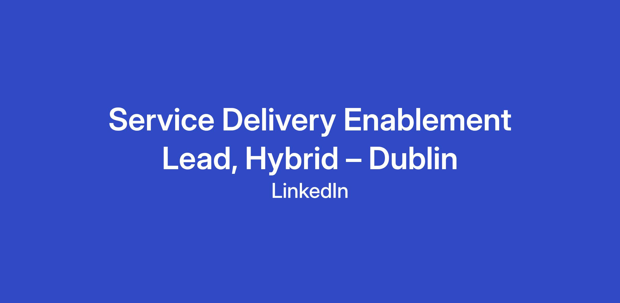Service Delivery Enablement Lead, Hybrid – Dublin