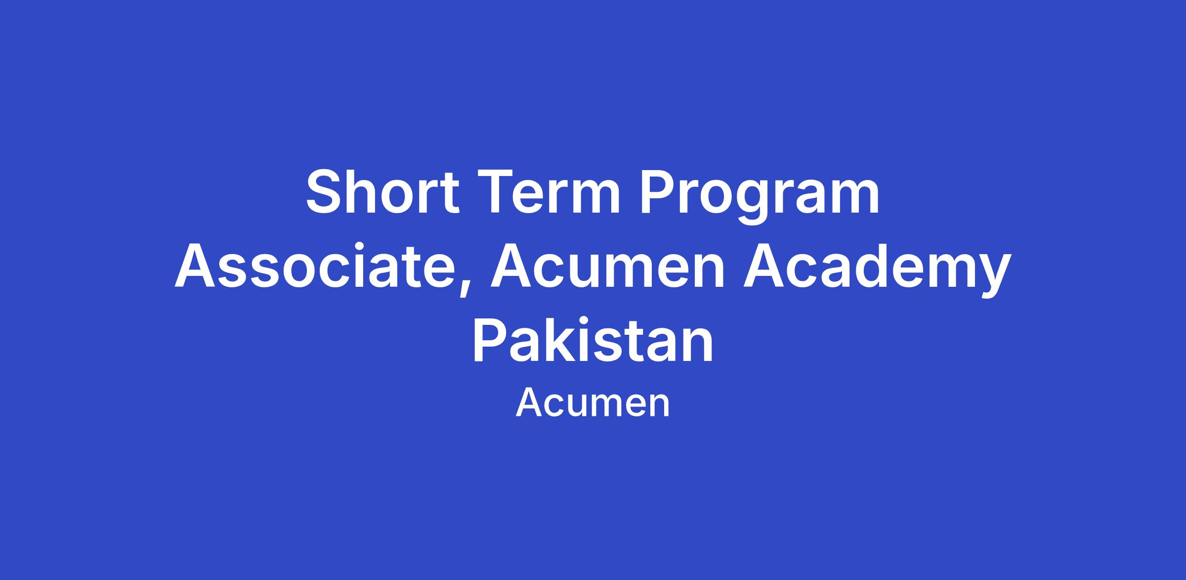 Acumen is looking for a Program Associate with at least 3 year of experience to join the Pakistan Acumen Academy team. We are looking for someone who brings excellent communication and community-engagement skills, strong event-management know-how, analytical rigor, and the ability to provide support in a dynamic, fast-paced environment. The ideal candidate will be able to bring together communication, outreach, and effective coordination to deliver a strong, cohesive program experience.