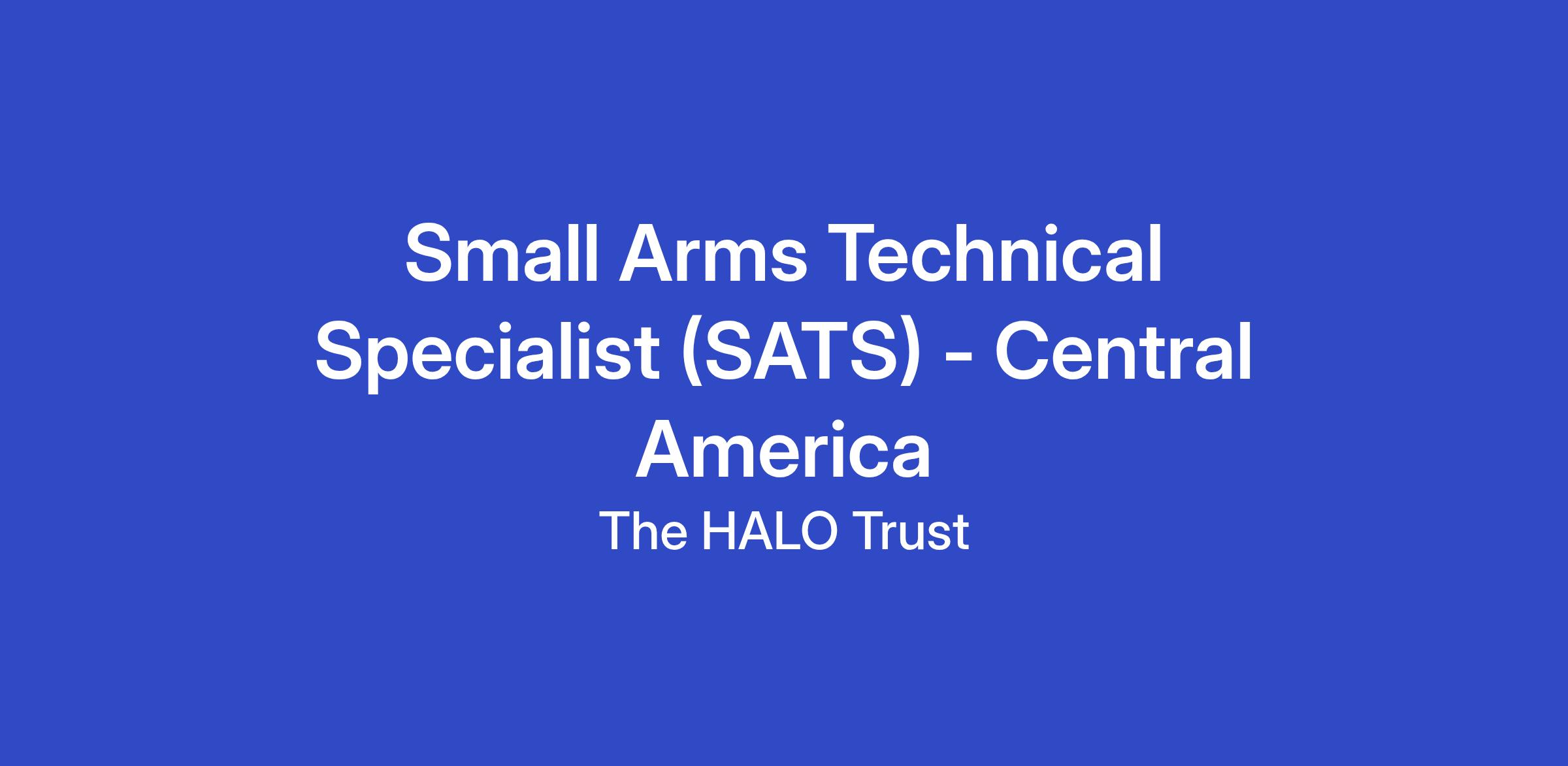Reporting directly to the Operations Manager, the SATS will provide technical support to HALO Central America operations, including the planning and delivery of Weapons and Ammunition Management activities in Central America and, when needed, in other HALO programmes. The SATS will ensure technical delivery are implemented in accordance with the International Ammunition Technical Guidelines (IATGs) and other international standards (MOSAIC, IMAS) as well as with HALO’s policies and mandate.