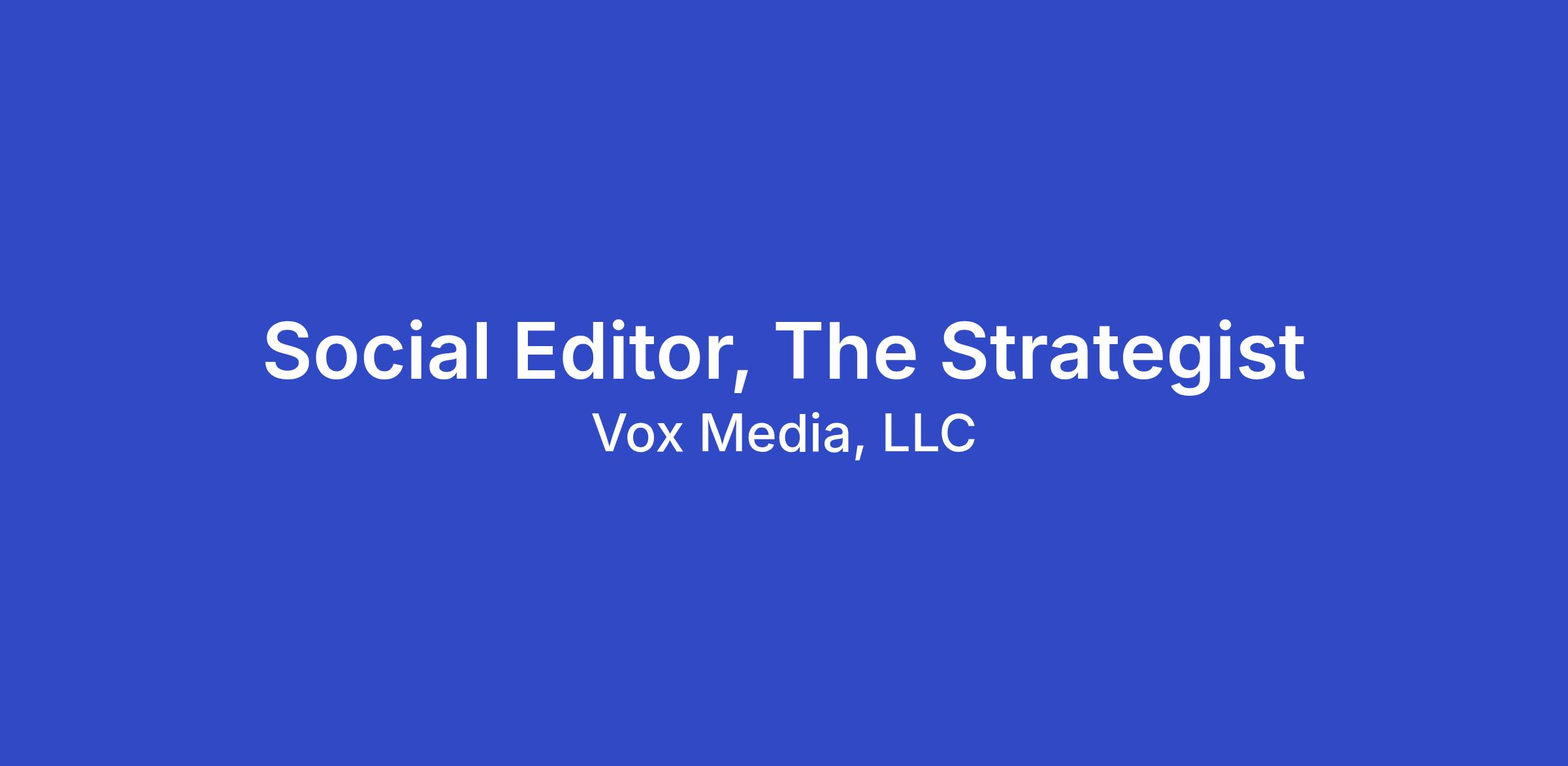 We’re looking for a social editor to help manage the Strategist’s social accounts. This person will work across social platforms to develop ideas, create written and video content, and represent the brand in a way that feels fresh, culturally aware, and unmistakably us. They will be the ‘host’ of the Strategist on Instagram, and help guide our readers through the shopping landscape. You should be able to flawlessly write a caption, film and edit green-screen takes of a news post for Tik Tok, ideate social-only rubrics with our team of writers, as well as asking talent questions for social video.