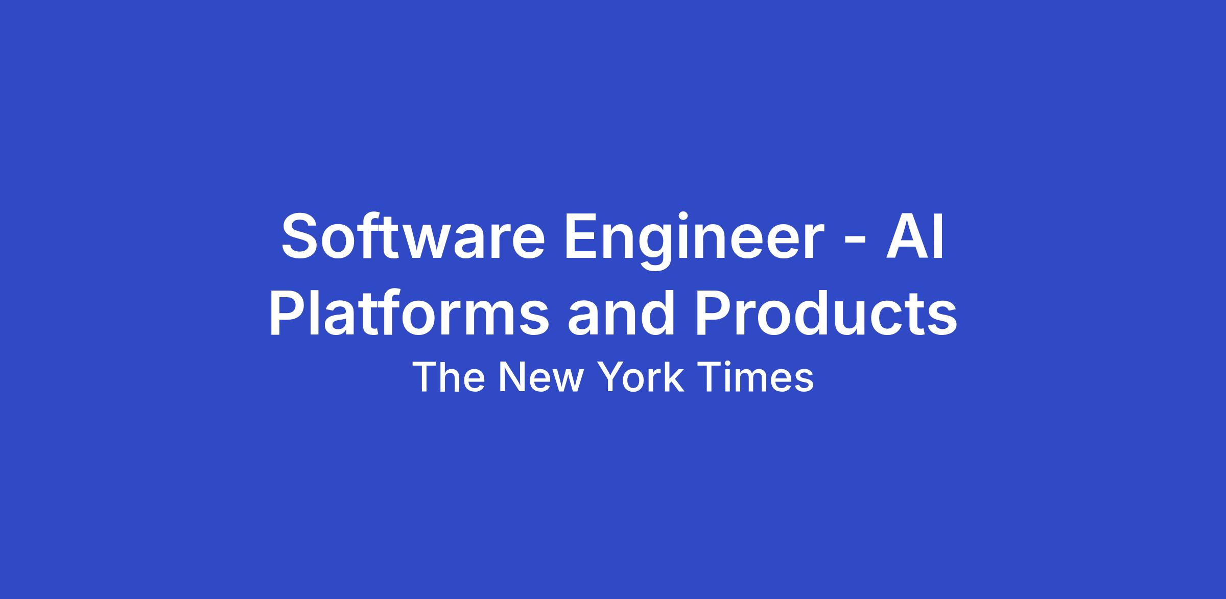 The New York Times is hiring a Software Engineer to join the New A.I. Products & Platforms mission. We are a team building the next generation of reader-facing A.I. experiences for one of the world's most trusted news organizations.