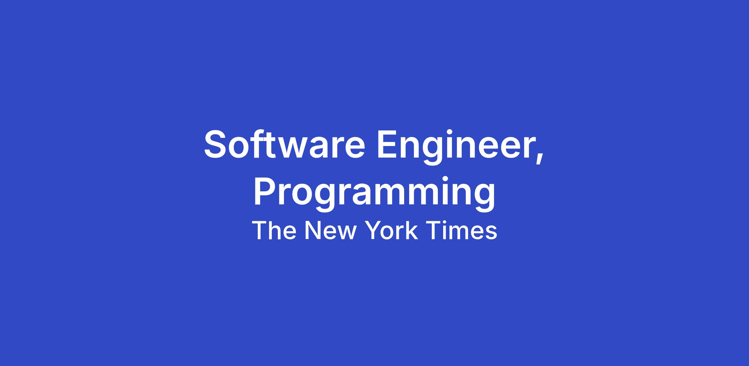 The New York Times is looking for a Software Engineer to join the Programming team. You will report to the Senior Engineering Manager, Programming and work with a team of engineers and cross-functional partners to build tools to support the newsrooms and bundled brands of the NY Times.