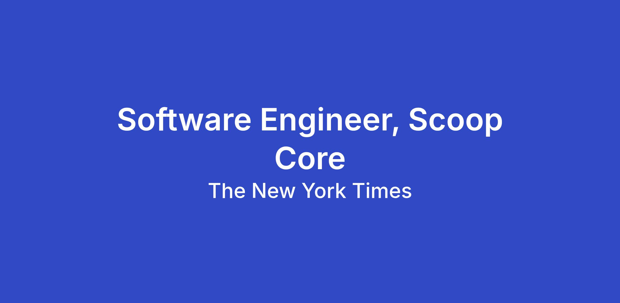 The New York Times is looking for a Software Engineer to join our Scoop Core team. Our mission is to empower product teams with a modern platform that serves as the single source for all content.
