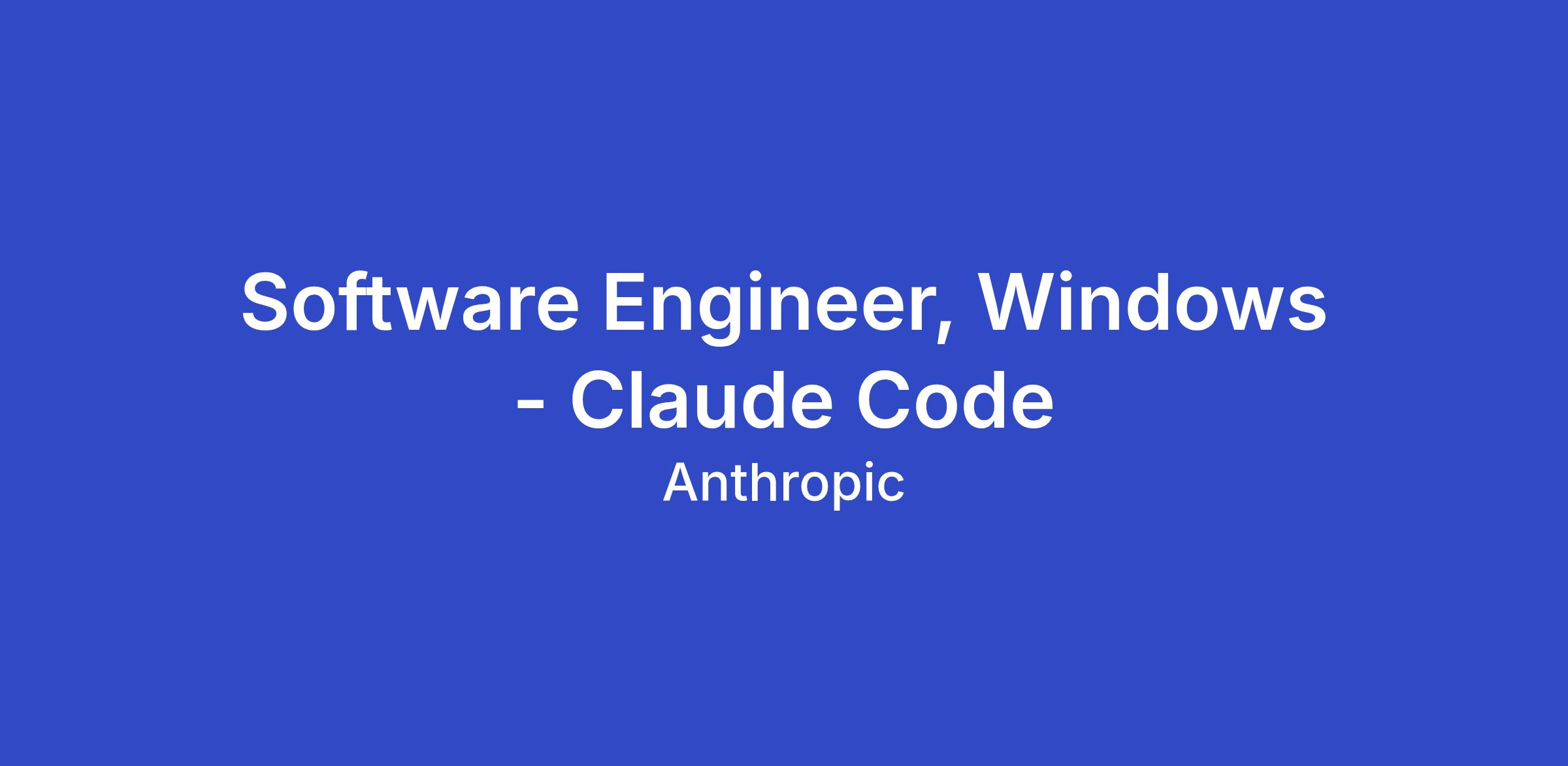 We're specifically looking for a Software Engineer with deep Windows expertise to help us build and maintain Claude Code, our AI-powered coding assistant. The ideal candidate will have a passion for developer tools, strong experience building CLI applications on Windows, and a desire to ensure Windows developers have a first-class experience with our tools.