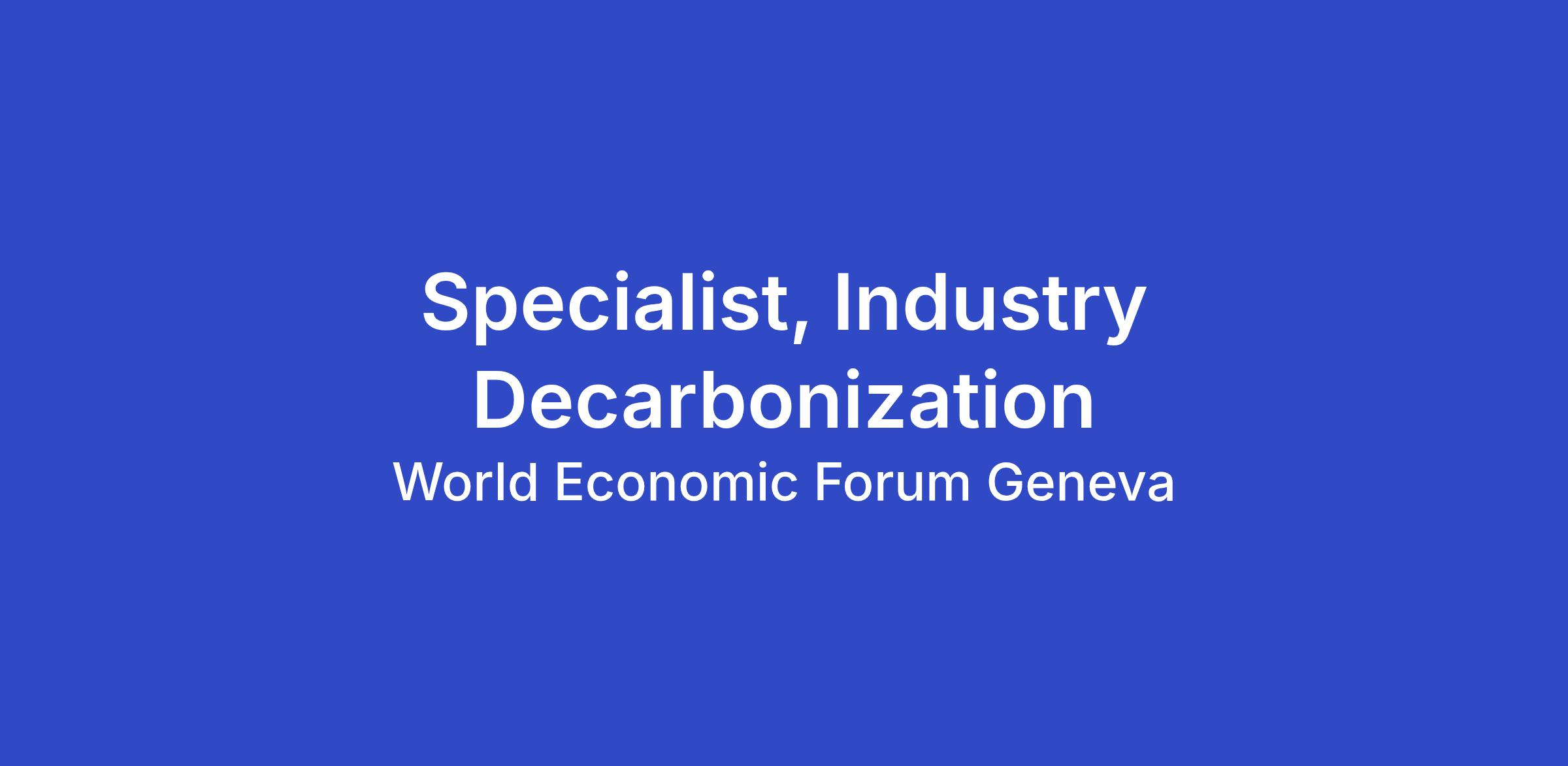 The World Economic Forum is seeking a Specialist, FMC Decarbonization to support the delivery of the First Movers Coalition (FMC) — a global initiative accelerating the commercialization of zero-carbon technologies across seven hard-to-abate sectors.