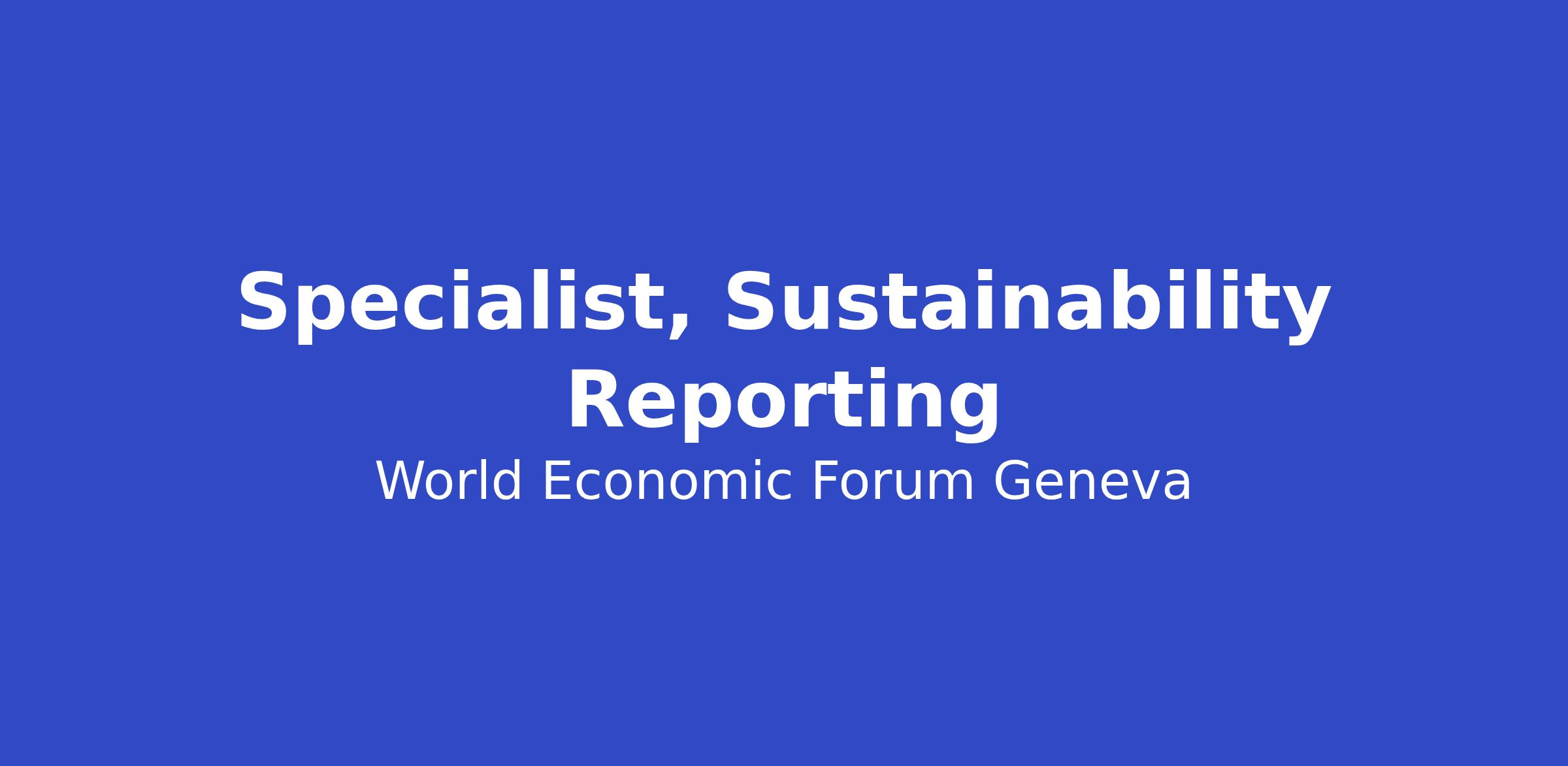 The Specialist, Sustainability Reporting Initiatives will be responsible for supporting the project management office at the World Economic Forum’s premises in Geneva, Switzerland.