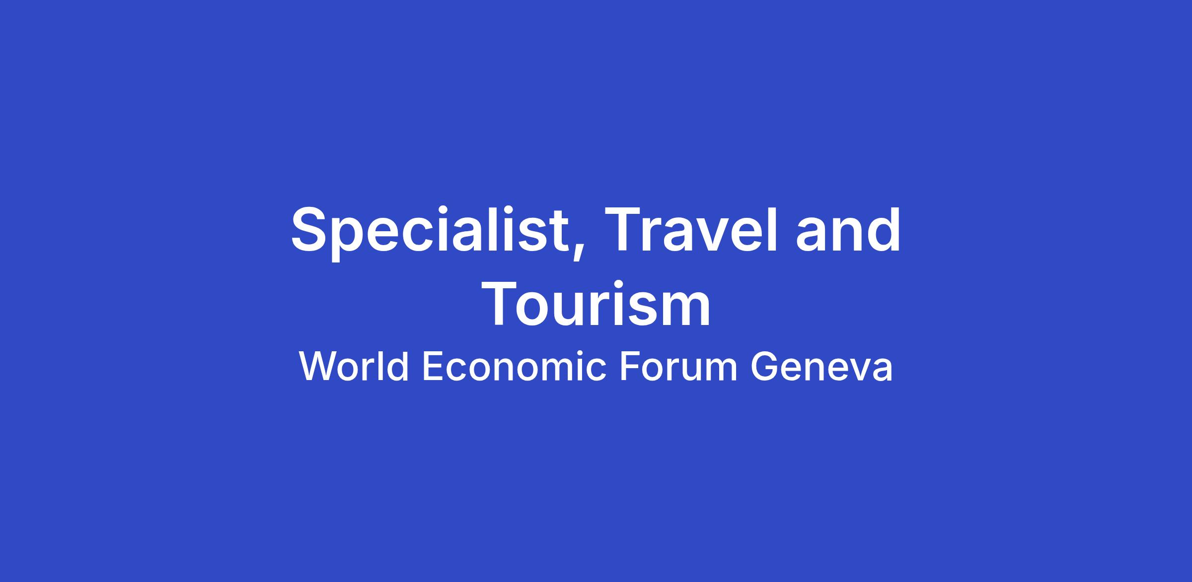 The Initiative Specialist, Travel and Tourism reports to the Experience, Travel & Tourism Lead and works closely with the wider initiative team, including the Insights Lead, Community Lead and Insights Specialist. The role also involves close collaboration with colleagues across the Global Industry Team, the Centre for Urban Transformation, the Global Communications Group, and other Forum teams, as well as with external stakeholders, partners and community members.