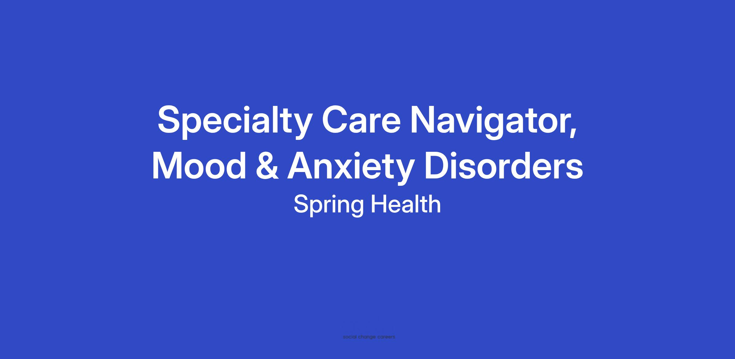 We're currently looking for an independently licensed mental health professional to join the Care Navigation team (LCSW, LMFT, LPC required) to support members seeking care with chronic and treatment resistant mood and anxiety disorders. Reporting to the clinical lead of the Mood and Anxiety Disorder Specialty Care Program, the Mood and Anxiety Specialty Care Navigator will provide initial assessment, support and coaching, referral, and ongoing care coordination for members within Spring Health’s innovative Mood and Anxiety Disorders Program.
