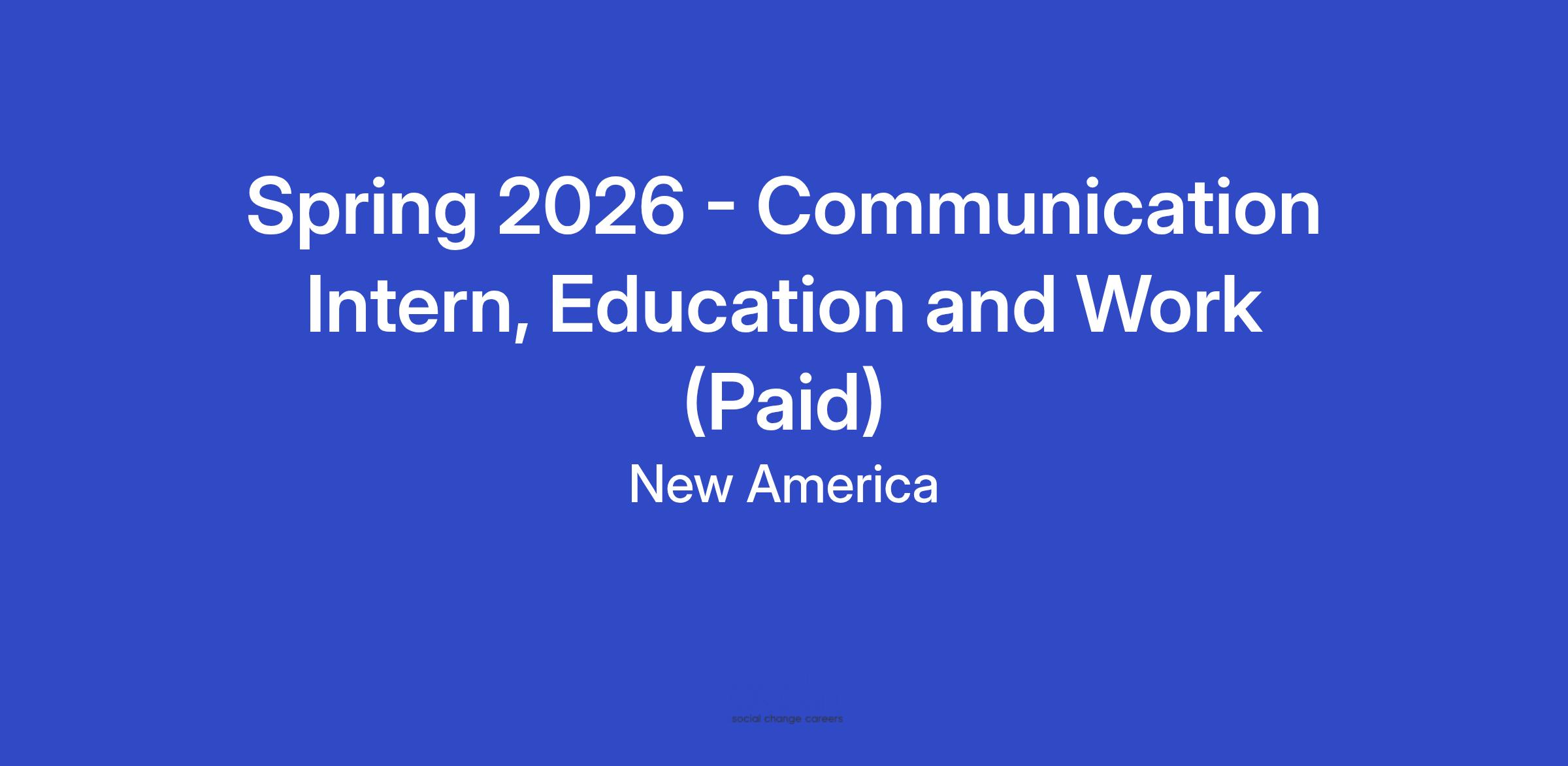 New America’s Education & Work programs (Ed & Work programs) seek a Communications Intern to assist in the development of communications activities to raise the programs’ public profile and that of its staff using a variety of media tactics and channels. The Ed & Work communications team is committed to providing mentorship and valuable learning opportunities where the intern can develop and become an integral member of a three-person Ed & Work communications team.