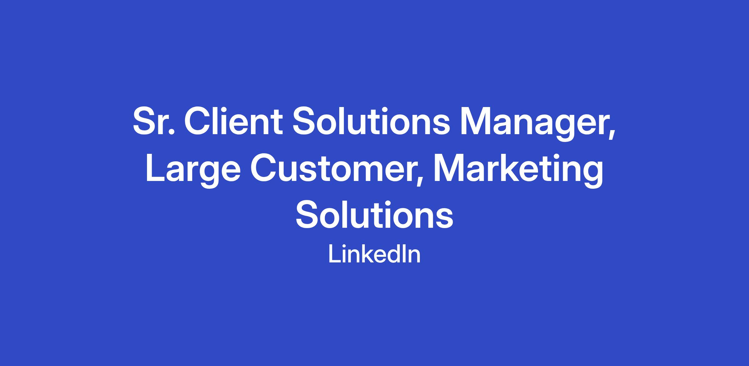 LinkedIn Marketing Solutions is searching for a Sr. Client Solutions Manager to manage relationships with our large and often most complex customers. This person will leverage their knowledge of online media, communication and relationship building skills, and analytical abilities to provide campaign intelligence and campaign strategy consultation, including identifying areas where LinkedIn can provide more value to our clients. The Sr. Client Solutions Manager will be measured by their ability to build, cultivate, and partner with our clients as well as their ability to drive incremental revenue. The Sr. Client Solutions Manager is a nimble team player who is comfortable managing multiple clients, campaigns, and projects concurrently.