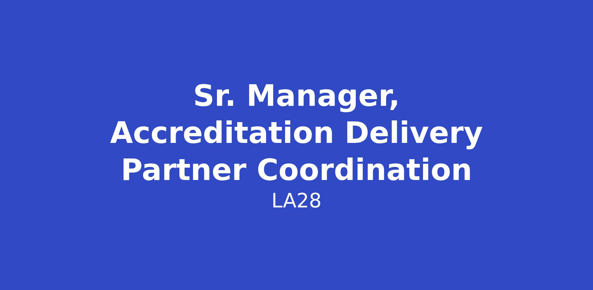 Sr Manager, Accreditation Delivery Partner Coordination: