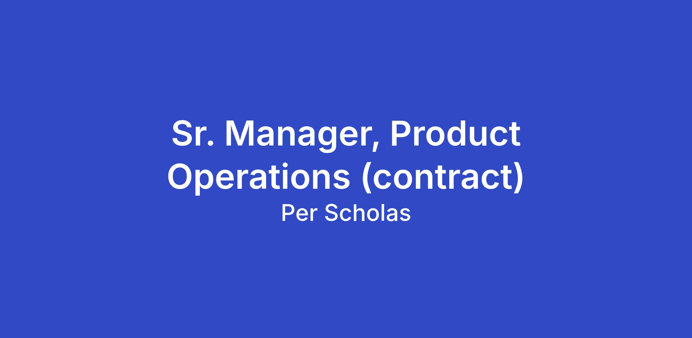 POSITION TITLE: Sr. Manager, Product Operations (contract)