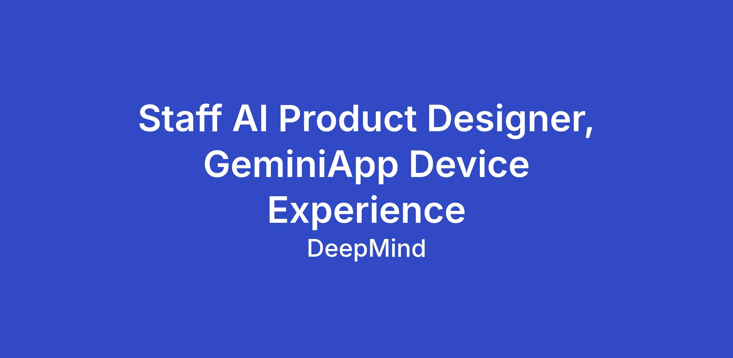 Join Google DeepMind as a Staff AI Product Designer on the Gemini App team, crafting world-class Gemini experiences for the home. This is a unique opportunity to be at the cutting edge of AI interface experimentation, tackling ambiguous, high-impact design challenges. You will be instrumental in inventing novel interaction patterns and rich multimodal experiences that help users get the most out of AI into their daily lives within communal and shared environments.