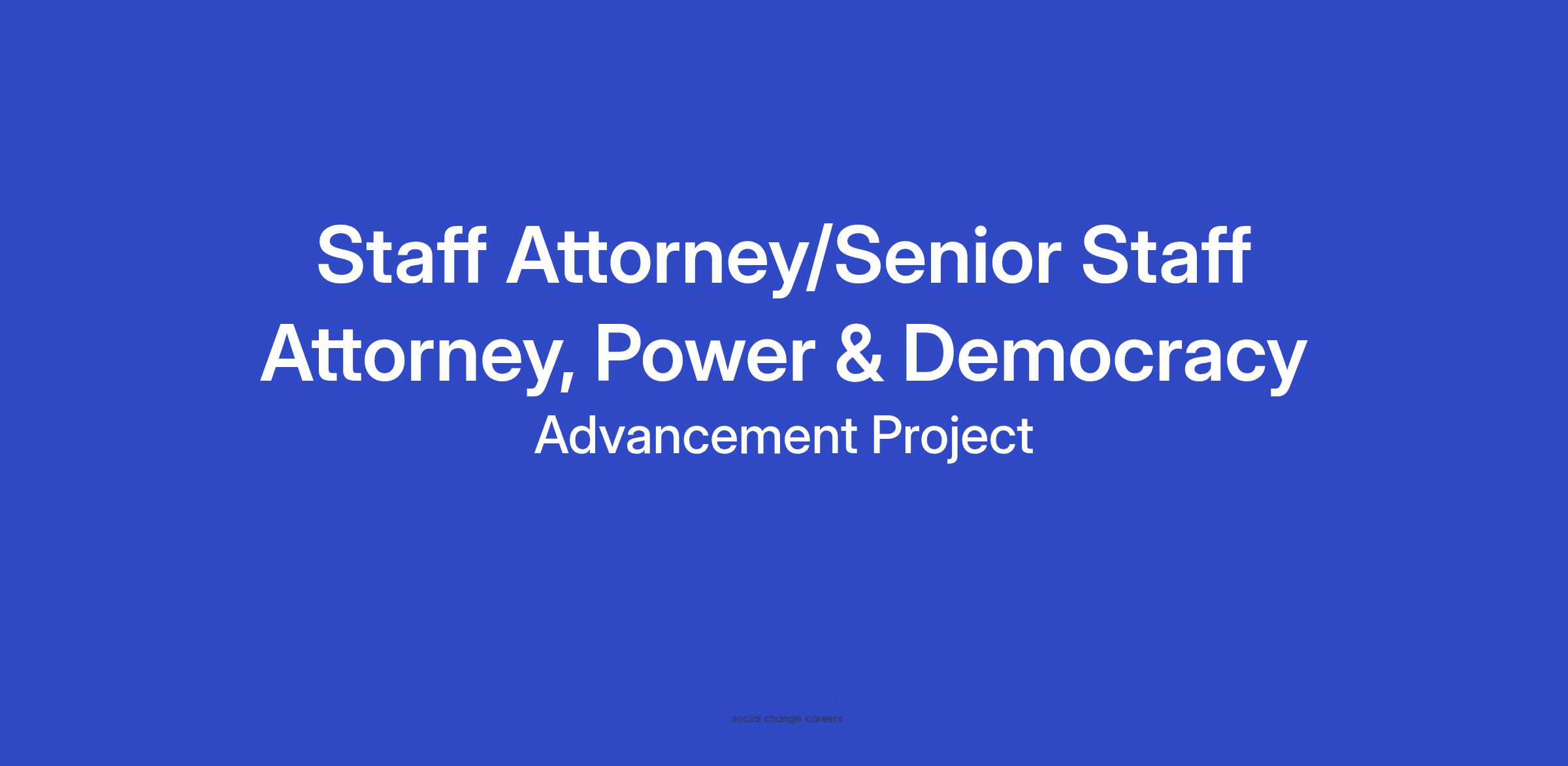 The Staff Attorney/Senior Staff Attorney will be expected to implement important strategic initiatives to advance the objectives and goals of the Power and Democracy Program. Responsibilities will encompass litigation, policy, voter protection, and public advocacy on behalf of Advancement Project and our grassroots partners in local communities.