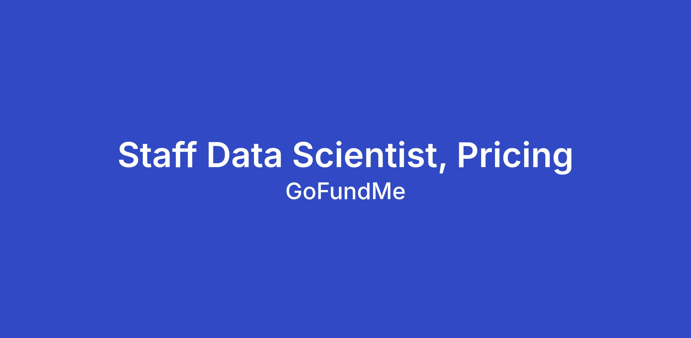 We’re looking for a Staff Data Scientist, Pricing to serve as the senior individual contributor driving the science, strategy, experimentation and AI deployment behind pricing and yield optimization at GoFundMe. This role sits at the intersection of economics, behavioral science, experimentation, and machine learning, with direct responsibility for optimizing donation conversion, donation amounts, and donor experience across the product.