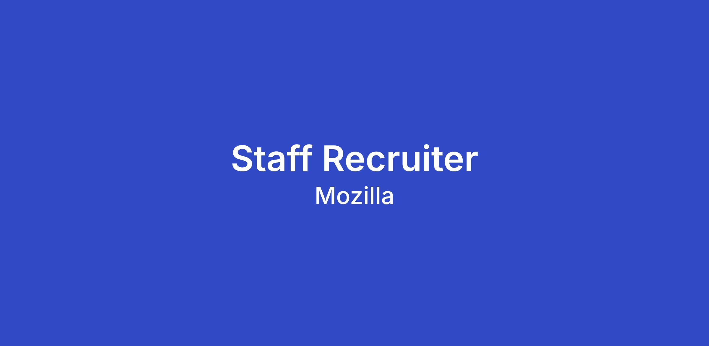 About this team and role:The People team architects the talent engine that powers Mozilla's mission-driven work. As a Staff Recruiter (P4), you are a high-level individual contributor responsible for driving end-to-end recruitment for our most complex and critical technical roles. You will operate as a talent architect, leading advanced sourcing initiatives and high-stakes closing strategies while ensuring operational excellence across the entire hiring lifecycle.