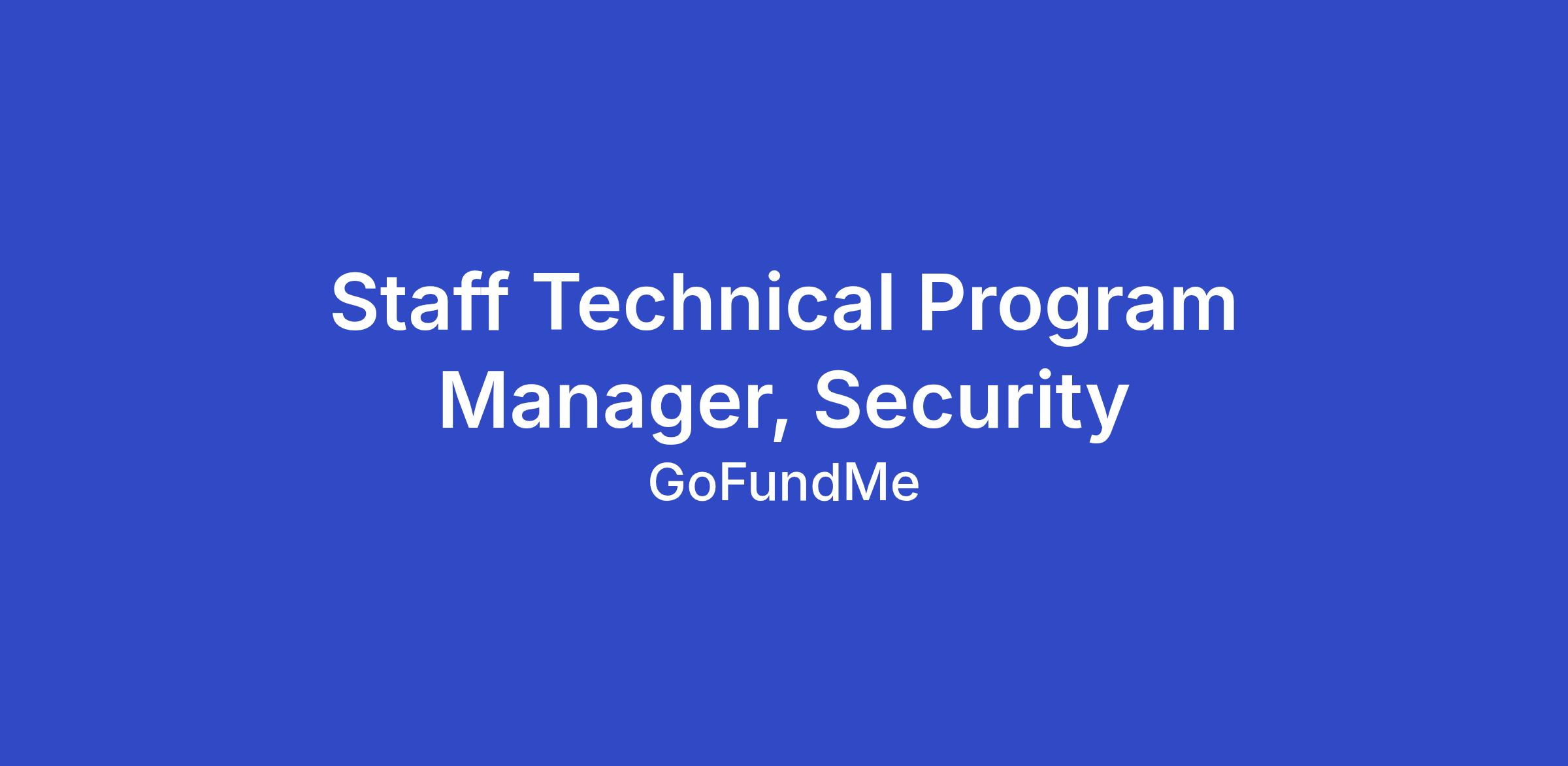 Join us! The GoFundMe team is searching for our next Staff Technical Program Manager (TPM), Security to drive execution, alignment, and accountability across security initiatives. In this role, you will work closely with security engineering, infrastructure, GRC, and product teams to develop strategic roadmaps, establish metrics, and ensure seamless program execution. Your work will help scale security efforts, optimize processes, and improve visibility across the organization.