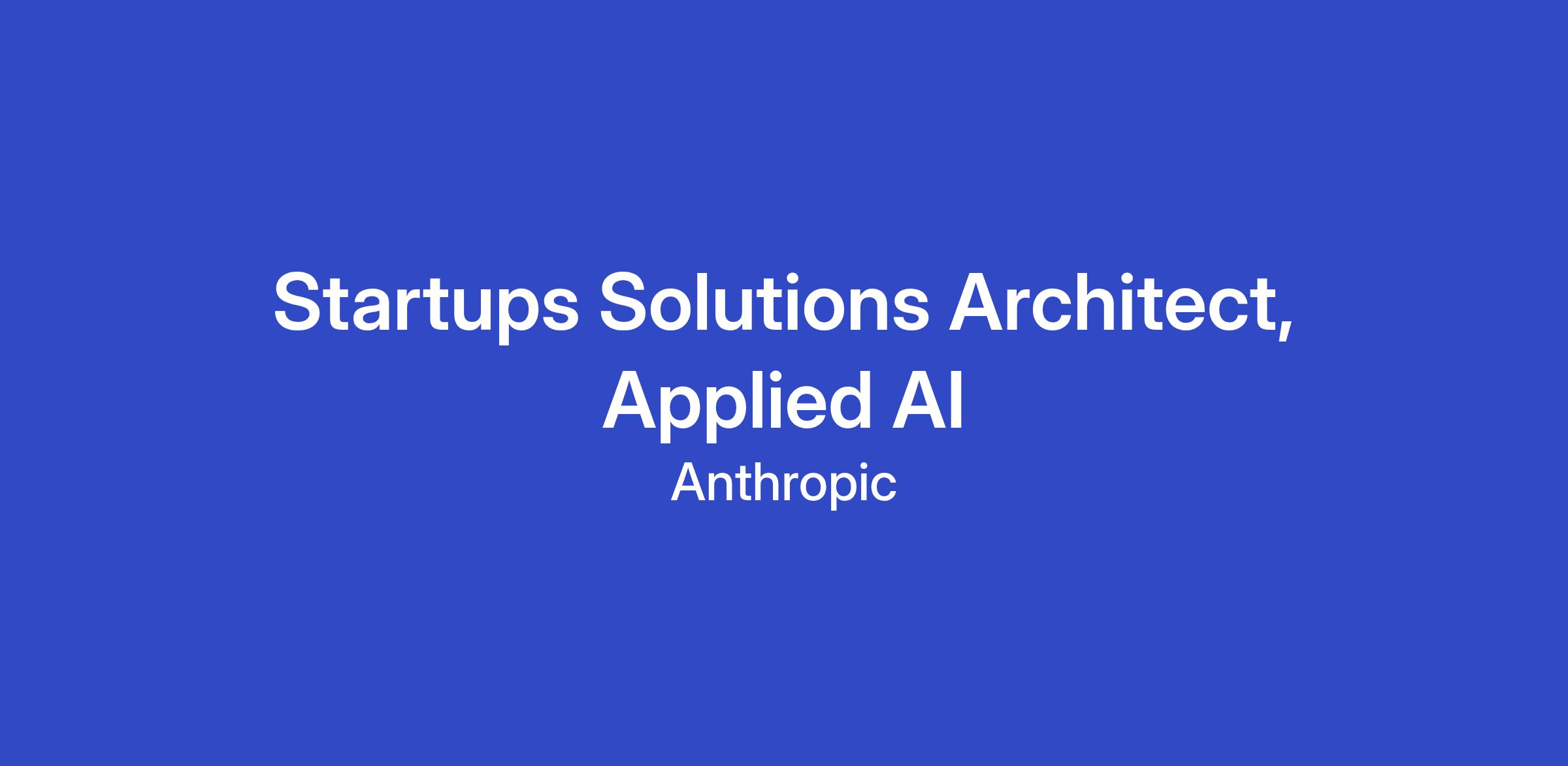 As a Solutions Architect on the Startups Applied AI team at Anthropic, you will win the trust of founders and engineers by being an exceptional technical partner, helping startups successfully build on the Claude Developer Platform as they grow from early product to scale. You'll combine deep technical expertise with a builder-first mindset to help startups architect innovative LLM solutions, win technical evaluations, and get the most out of Claude.