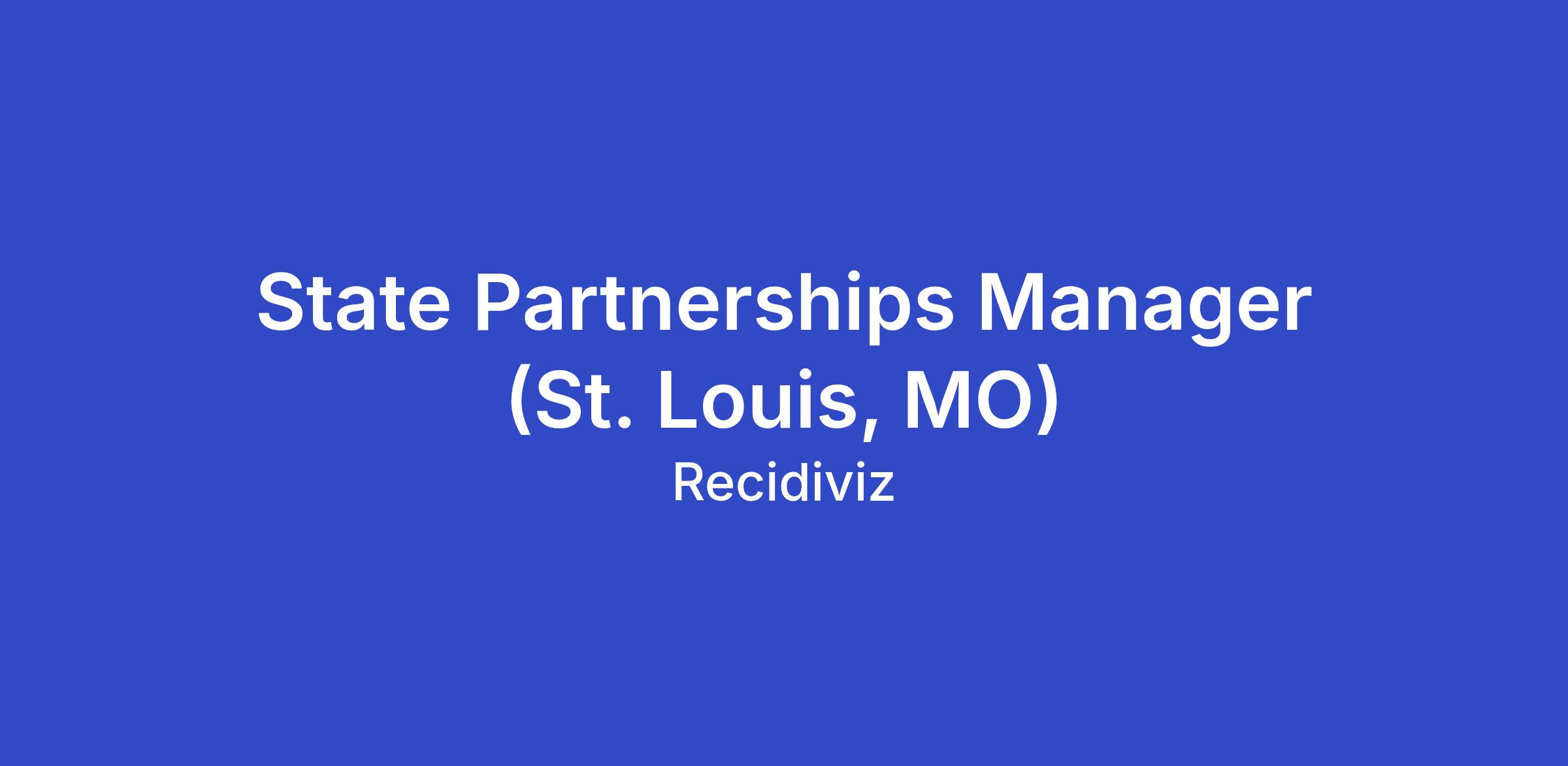 The State Partnerships Manager is responsible for building strong relationships, deploying relationship capital, maximizing impact, and creating value for their partner states. Your job is to partner closely with the leadership teams of state prison agencies. These leaders, your new best friends, are responsible for thousands of staff, tens of thousands of people in prison, and billions of dollars. By clearly articulating the specific needs in your partner state, you’ll define and communicate, internally and externally, how exactly Recidiviz will guide your partner states to safely increase liberty for the populations they influence. This role requires regular in-state travel (you would be expected to be holding in-person meetings with St. Louis officials 3-10 business days per month, with 1-4 days of travel within Missouri to prisons and parole offices across the state.