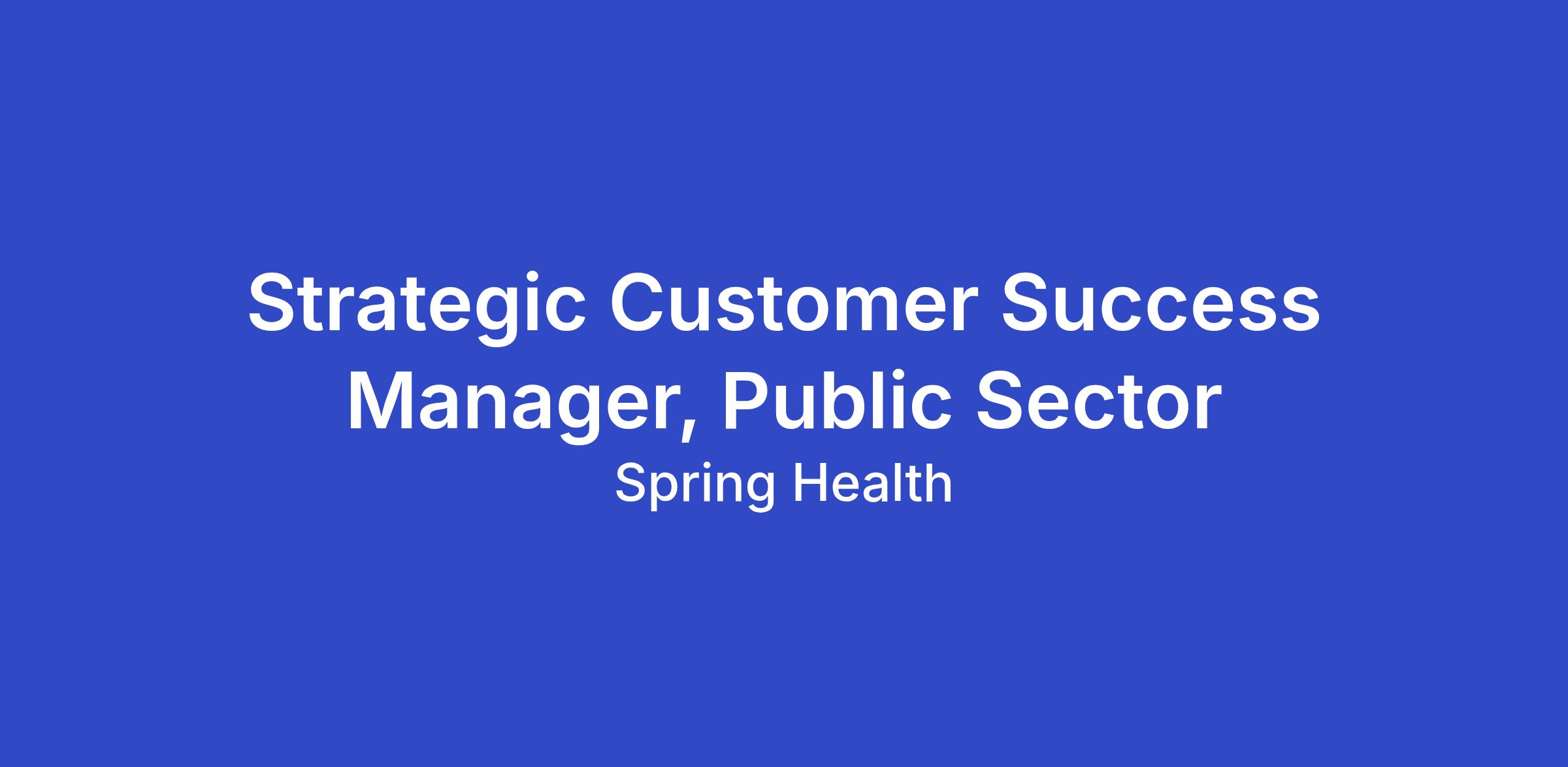 The Strategic Customer Success Account Manager at Spring Health builds and manages relationships with the company’s largest customers to ensure satisfaction, retention, and growth. This role oversees the full customer lifecycle, aligning Spring’s solutions with customer goals to drive engagement and revenue. Success is measured by accurate forecasting, achieving revenue targets, and fostering strong relationships across all levels of the customer organization. This is a California based, full time position on our team reporting to the VP of Public Sector. Some travel (20%) may be required for in-person events or meetings.
