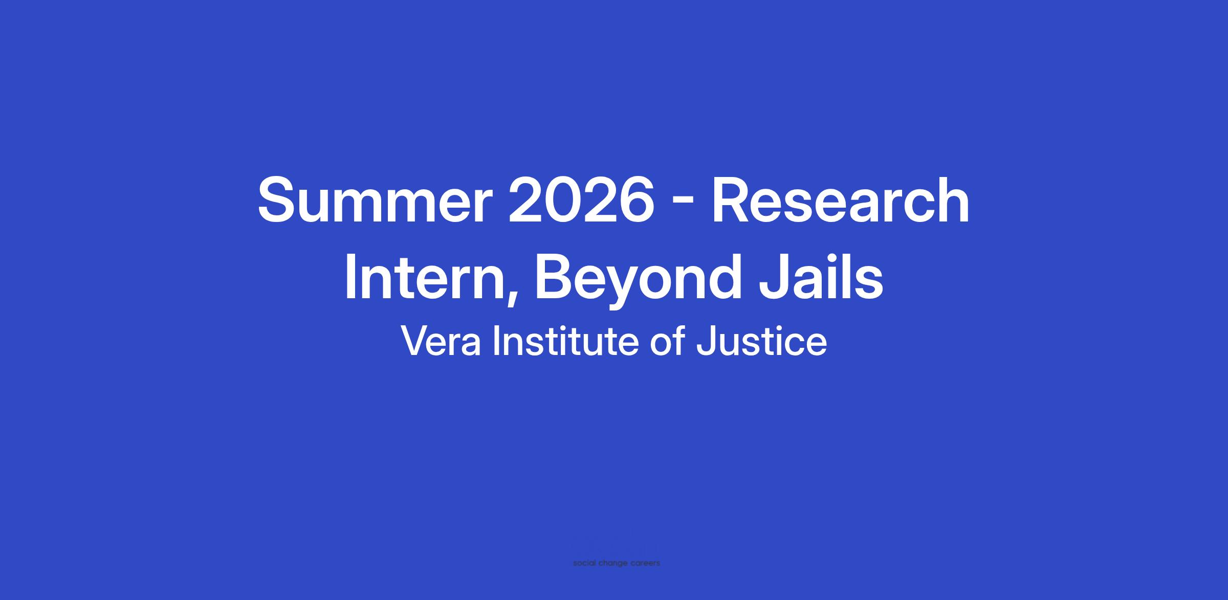The Research Intern role for Beyond Jails is an opportunity for a college or graduate-level student or recent graduate to experience working in a full-time research role at a non-profit organization. Working on the Beyond Jails team, they will support analysis of administrative data from courts, jails, and other justice agencies, to generate descriptive and inferential findings that will inform our policy and advocacy work. The Research Intern will participate in day-to-day team activities including conducting research, participating in virtual and possibly in-person meetings with state and local community partners, team-building activities, and more. The intern will be supervised by a senior researcher on the team, who will provide ongoing guidance and train the intern on a range of quantitative and qualitative research skills as needed. Other Vera staff will also be available to support the intern.