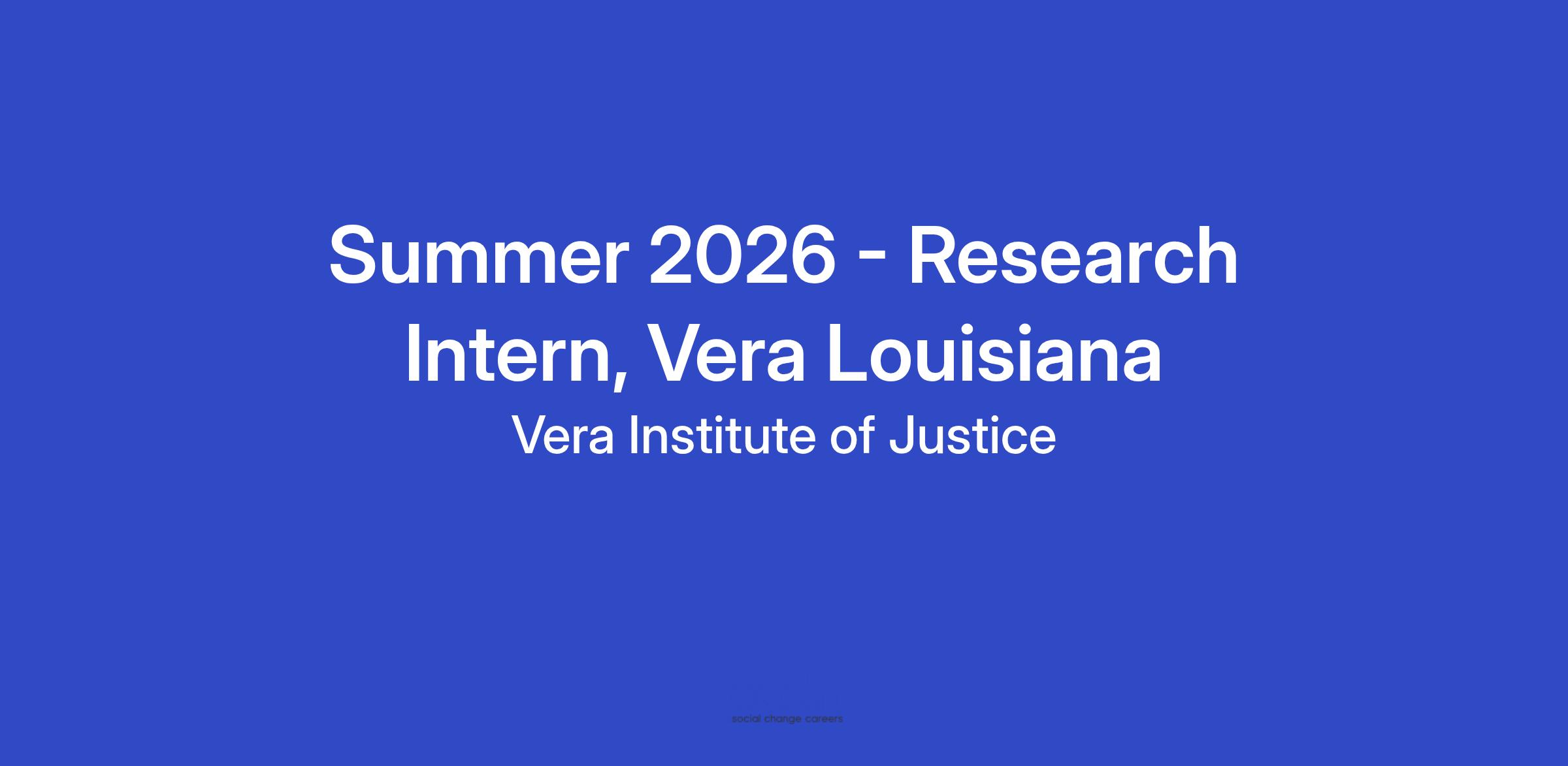 Vera Louisiana is seeking a part- or full-time (21-35 hours/week) summer Research Intern to provide a wide range of support for our ongoing projects, including jail population reduction, increasing investment in thriving communities, and addressing Louisiana’s carceral impact in multiple parishes and at the state legislature. The Research Intern will be supervised primarily by the Associate Director of Research and will complete a variety of projects with other staff. This internship will provide an opportunity to gain knowledge and experience in applied social justice research, using research to advance advocacy goals, and criminal legal systems in New Orleans and other parts of Louisiana.