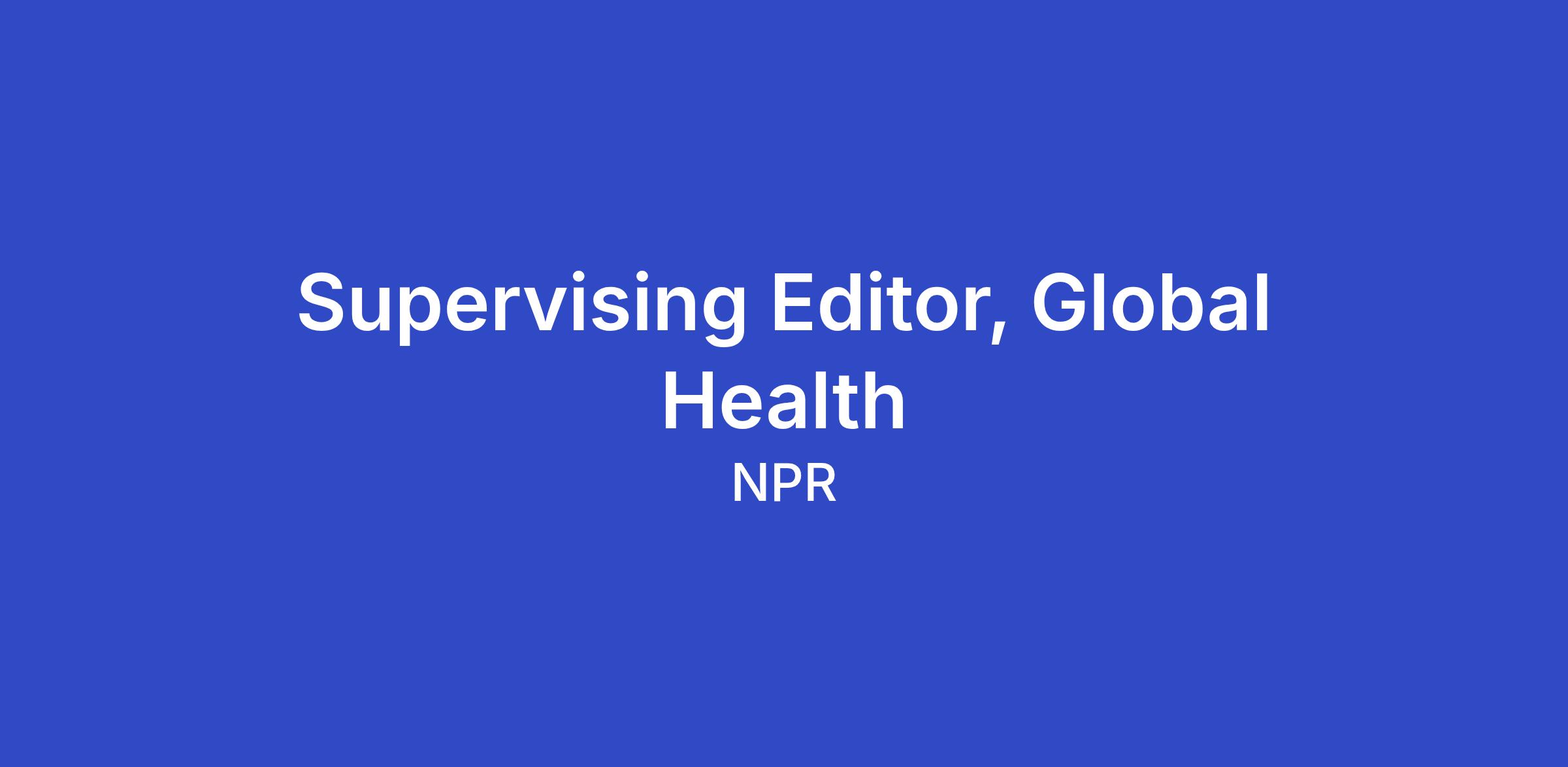 The Supervising Editor for Global Health oversees multiplatform coverage by a group of reporters and editors focused on chronic health and development issues in lower income countries.