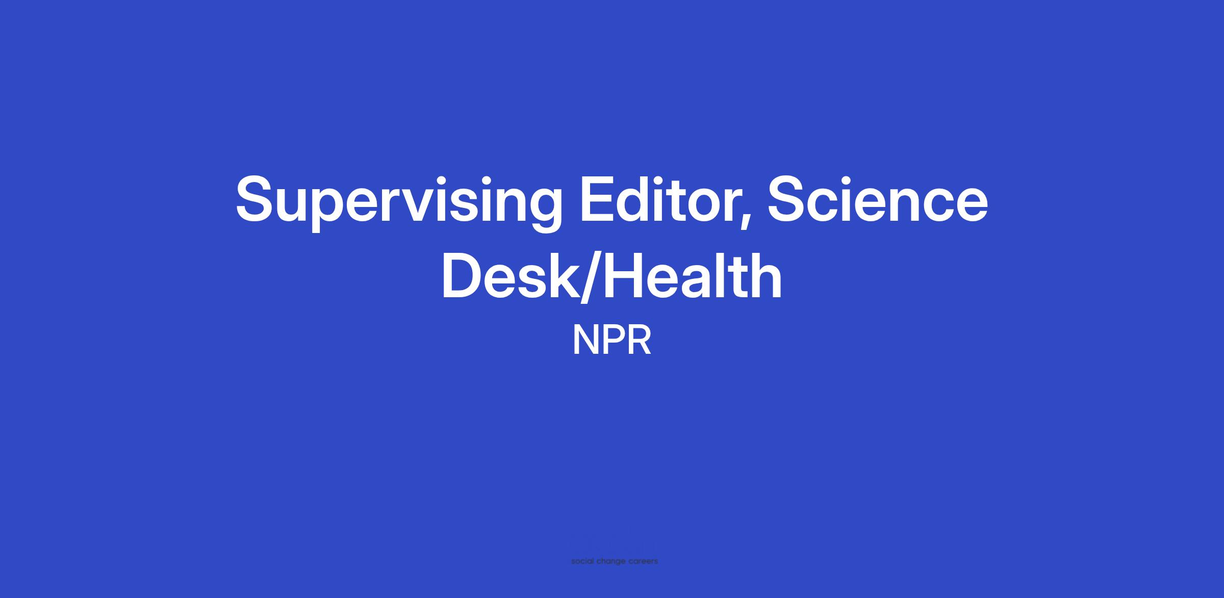 NPR is looking for a smart, enthusiastic leader to guide our enterprise and high impact science and health coverage, particularly breaking news, on the swing shift