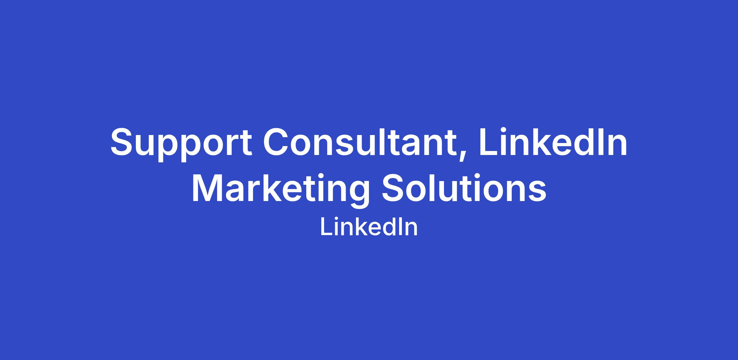 We are looking for a Marketing Consultant to join our LinkedIn Marketing Solutions (LMS) Support team to deliver an outstanding member experience to Marketing Solutions clients. In this role you will be responsible for responding to a variety of inquiries from advertisers on our platform submitted through multiple communication channels. Your key duties will be answering questions about Marketing Solutions products, diagnosing and troubleshooting campaign performance issues, while at the same time suggesting key ways to add value to the overall experience to help advertisers maximize the performance of their campaigns