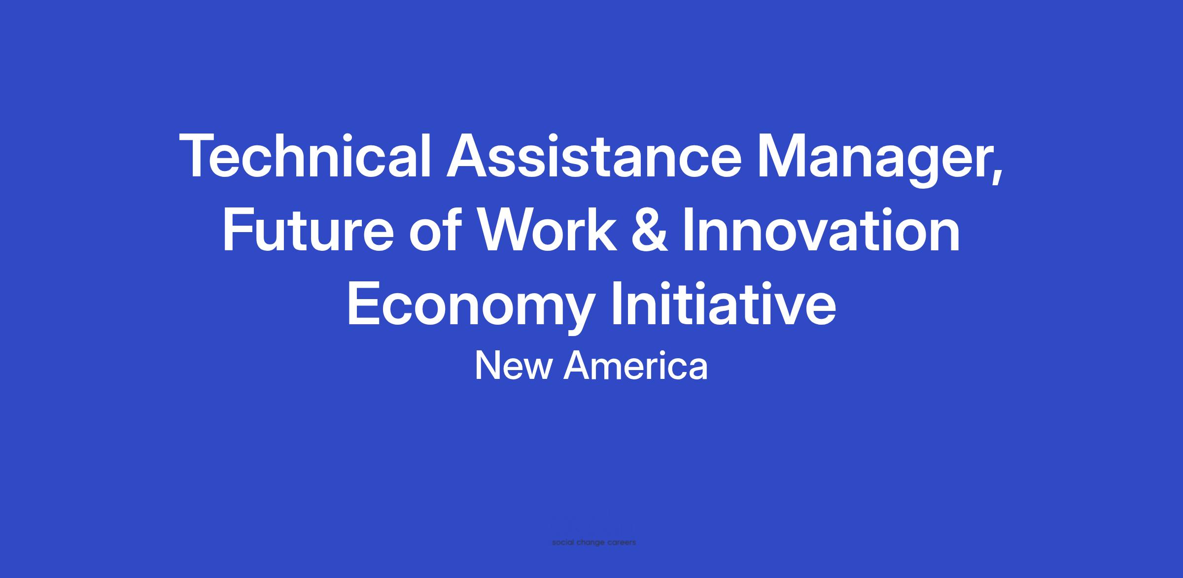 New America’s Future of Work & Innovation Economy (FOWIE) Initiative is seeking a Technical Assistance Manager to serve as the lead project manager for its Accelerator for Community Colleges in the Innovation Economy—a national technical assistance and community of practice initiative jointly launched with the U.S. National Science Foundation. The Accelerator supports community colleges in building their institutional capacity for STEM/emerging technology workforce development, as well as regional tech-based economic development partnerships. The Accelerator serves more than a dozen community college partners in the NSF’s Regional Innovation Engines–a historic federal program to support regional public-private teams in growing industries around emerging technologies– including the water economy, textile innovation, smart agriculture, regenerative medicine, clean energy capture and storage, chemical manufacturing, battery manufacturing, and beyond.