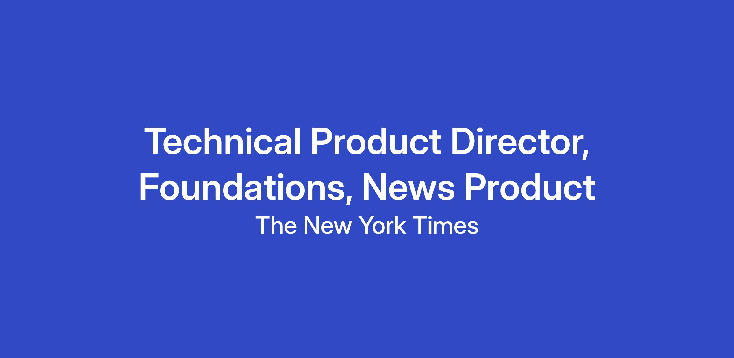 The New York Times is looking for a Technical Product Director to lead our Foundations team within the News Product Mission. Our goal is to be the entry point for news for tens of millions more people around the world by being their first read, watch or listen—every day.