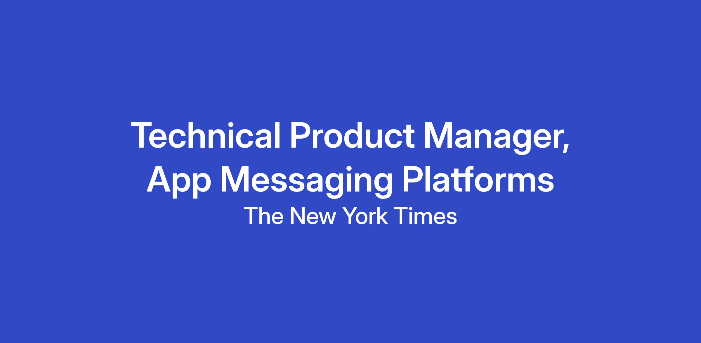 Critical to achieving that goal are the technical platforms that power our customer growth. We are looking for a Technical Product Manager to lead our messaging capabilities across our iOS and Android apps. You will partner with product managers, cross-functional stakeholders, and engineering leadership. Together, you will develop thoughtful capabilities for our engagement and subscription funnels. These capabilities will solve user needs across NYT brands, including News, The Athletic, Cooking, Games, and Wirecutter.