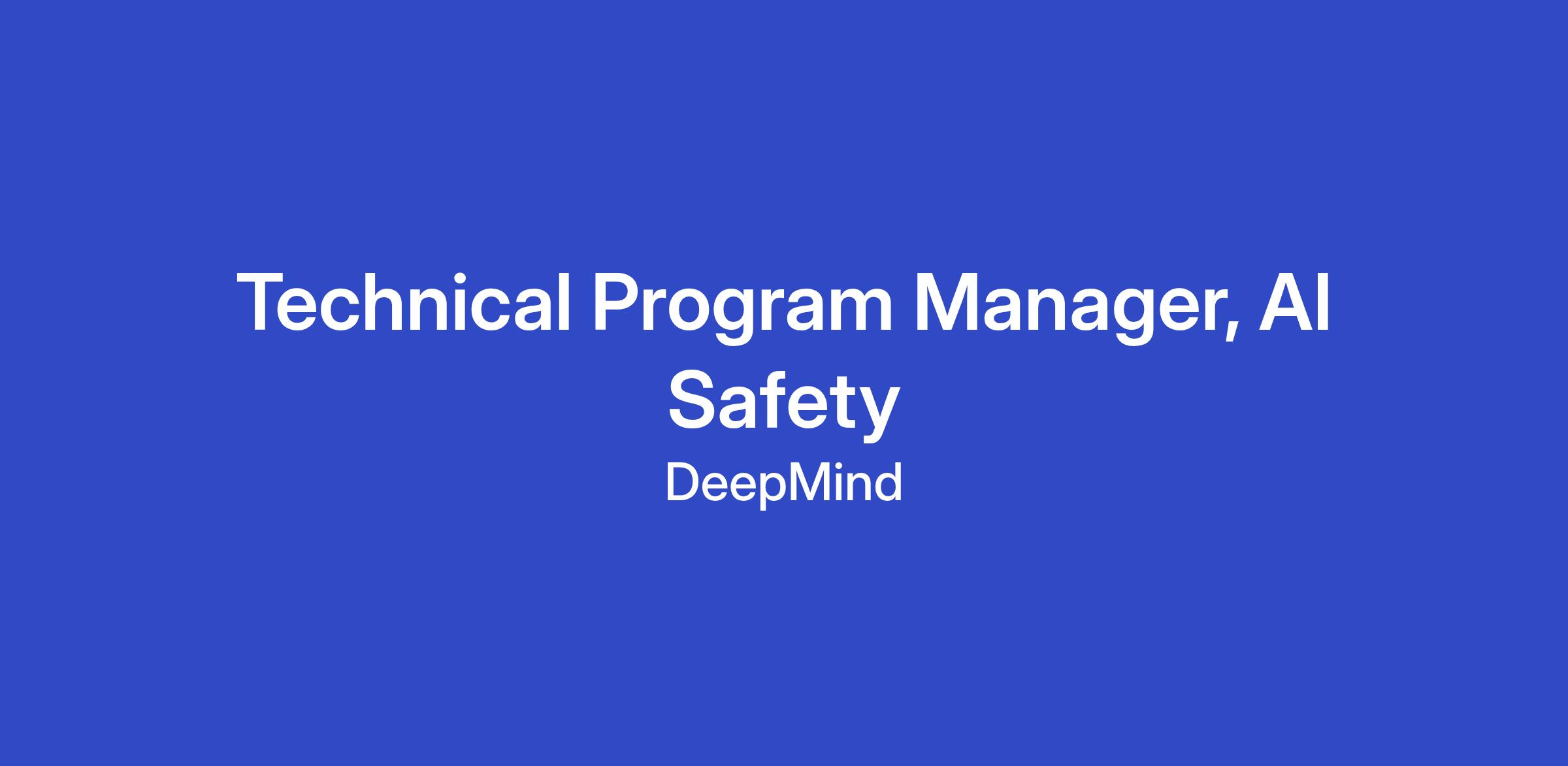 - This is a high-impact opportunity for an exceptional Technical Program Manager to cover a critical area of AI Safety. This role involves close collaboration with a geographically dispersed, virtual team spanning Mountain View, New York, London, and Zurich, all focused on the shared mission of developing, deploying, and researching safe AGI. The role requires a high tolerance for ambiguity inherent in cutting-edge AI research and operates at a fast pace. The role requires a highly organized individual who excels at managing complex stakeholder relationships and connecting teams across Google DeepMind to drive successful outcomes.