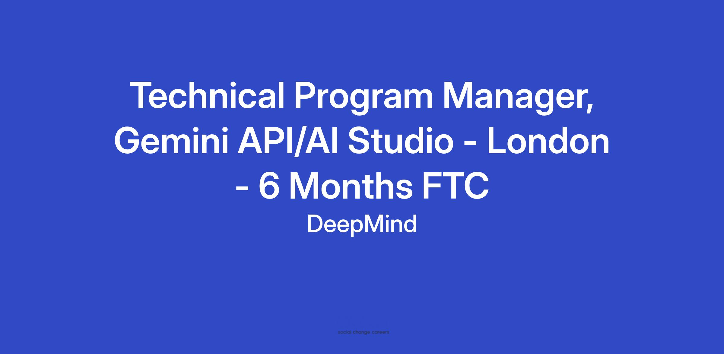 Technical Program Manager, Gemini API/AI Studio - London - 6 Months FTC