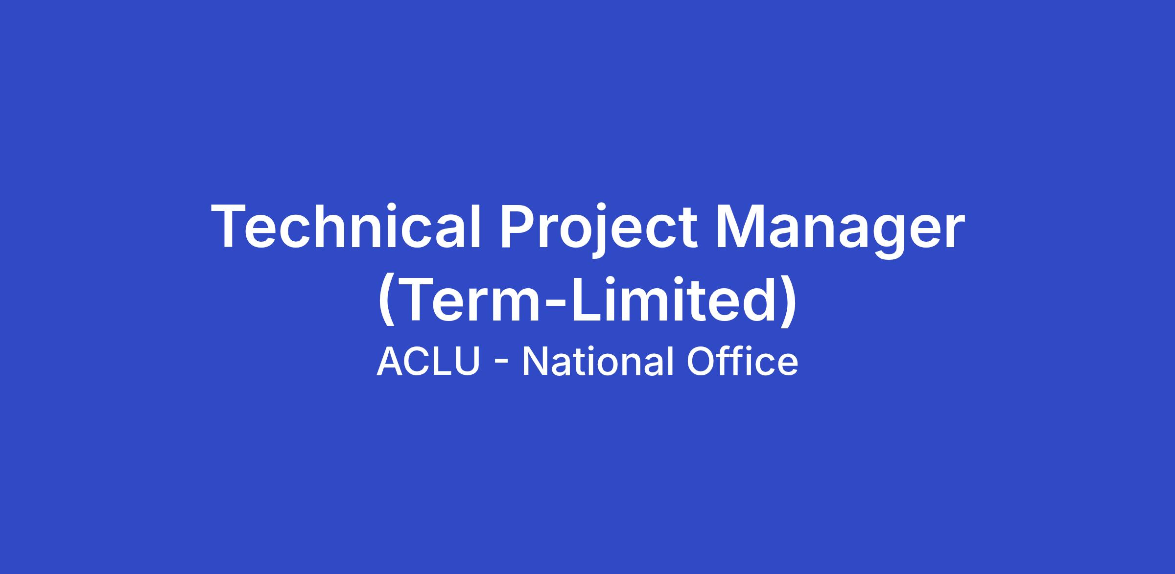 The ACLU seeks applicants for the full-time position of Technical Project Manager in the Information Technology Department of the ACLU’s National office in New York, NY, San Francisco, CA, or Washington, DC. This is a hybrid role that has in-office requirements of two (2) days per week or eight (8) days per month. This is a two-year term-limited position.