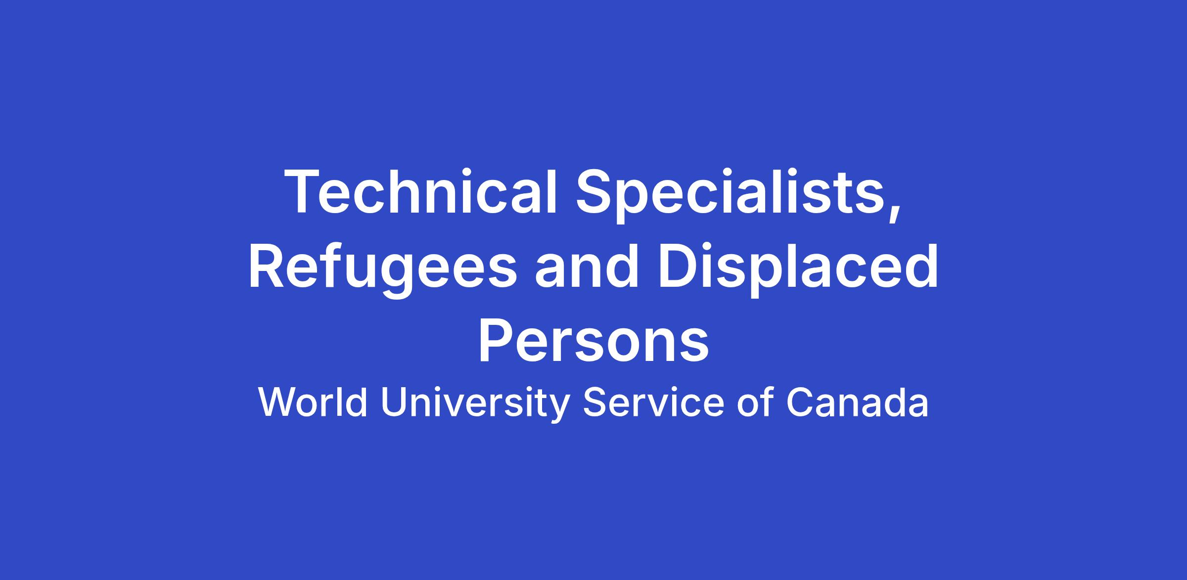 Position Title: Technical Specialists, Refugees and Displaced Persons