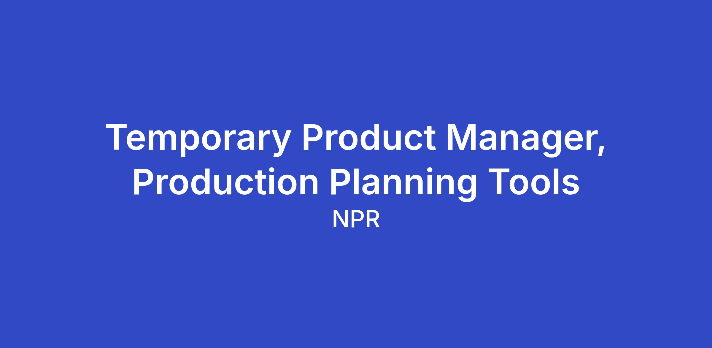 As the Product Manager for Production Planning Tools, you will take the helm of NPR’s broadcast and digital production tooling roadmap. This is a critical role focused on maintaining momentum for our enterprise tool suite. You will help lead the Nexus suite (planning, scripting, sourcing, and delivery) and the IO asset management system, ensuring that our journalists, hosts, and producers have the seamless, high-performance tools they need to tell the world’s most important stories.