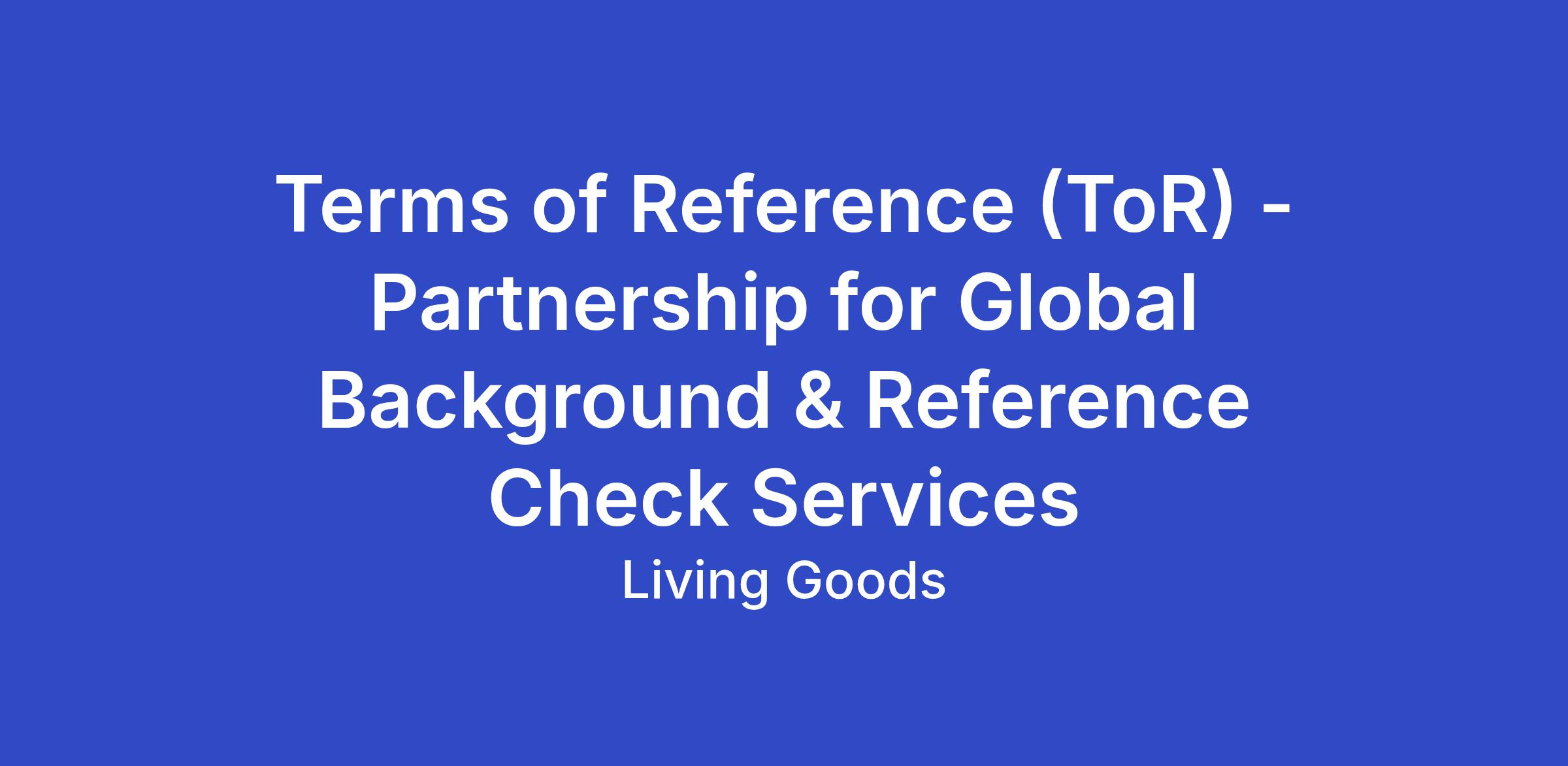 Terms of Reference (ToR) - Partnership for Global Background & Reference Check Services