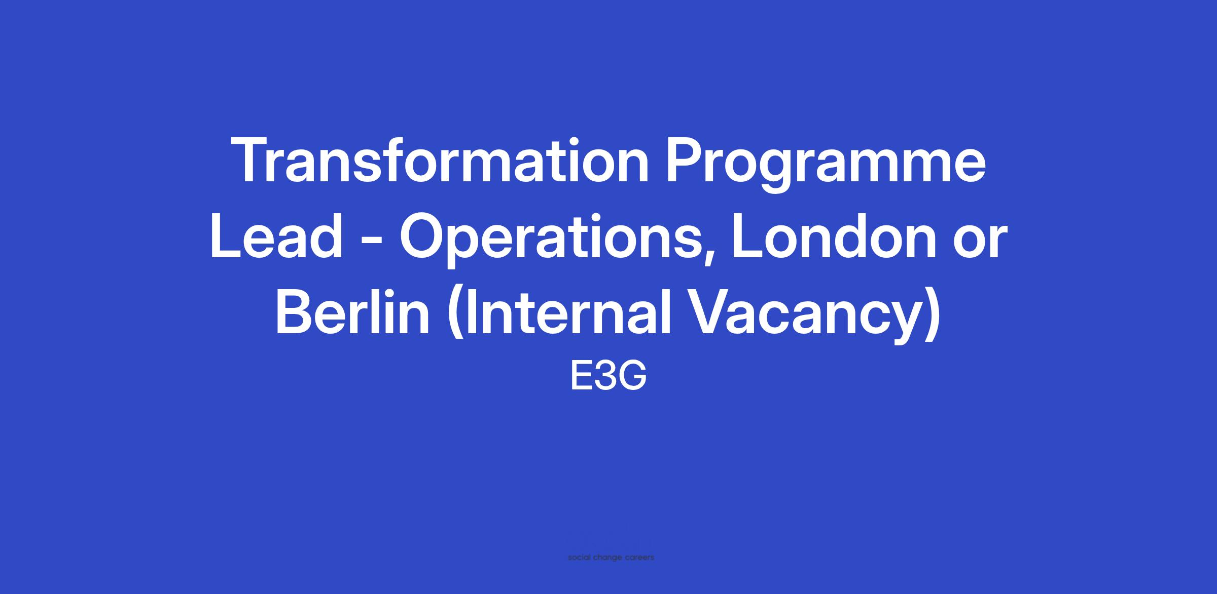 TRANSFORMATION PROGRAMME LEAD - OPERATIONS, LONDON OR BERLIN (INTERNAL VACANCY)