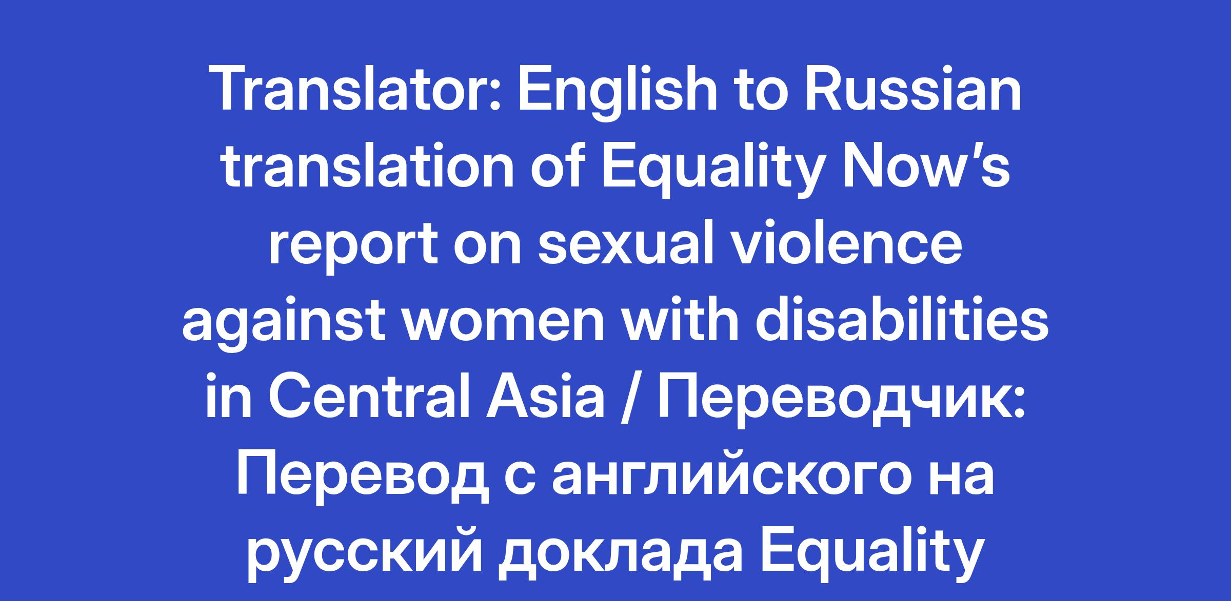 Equality Now seeks an experienced translator to translate a report (approximately 65 pages) on sexual violence against women, including women with disabilities, from English into Russian. The goal is to ensure clarity, accuracy, and consistency of the translation with human rights and legal terminology. The consultant will work closely with Equality Now’s team and deliver high-quality, publication-ready text within tight deadlines.