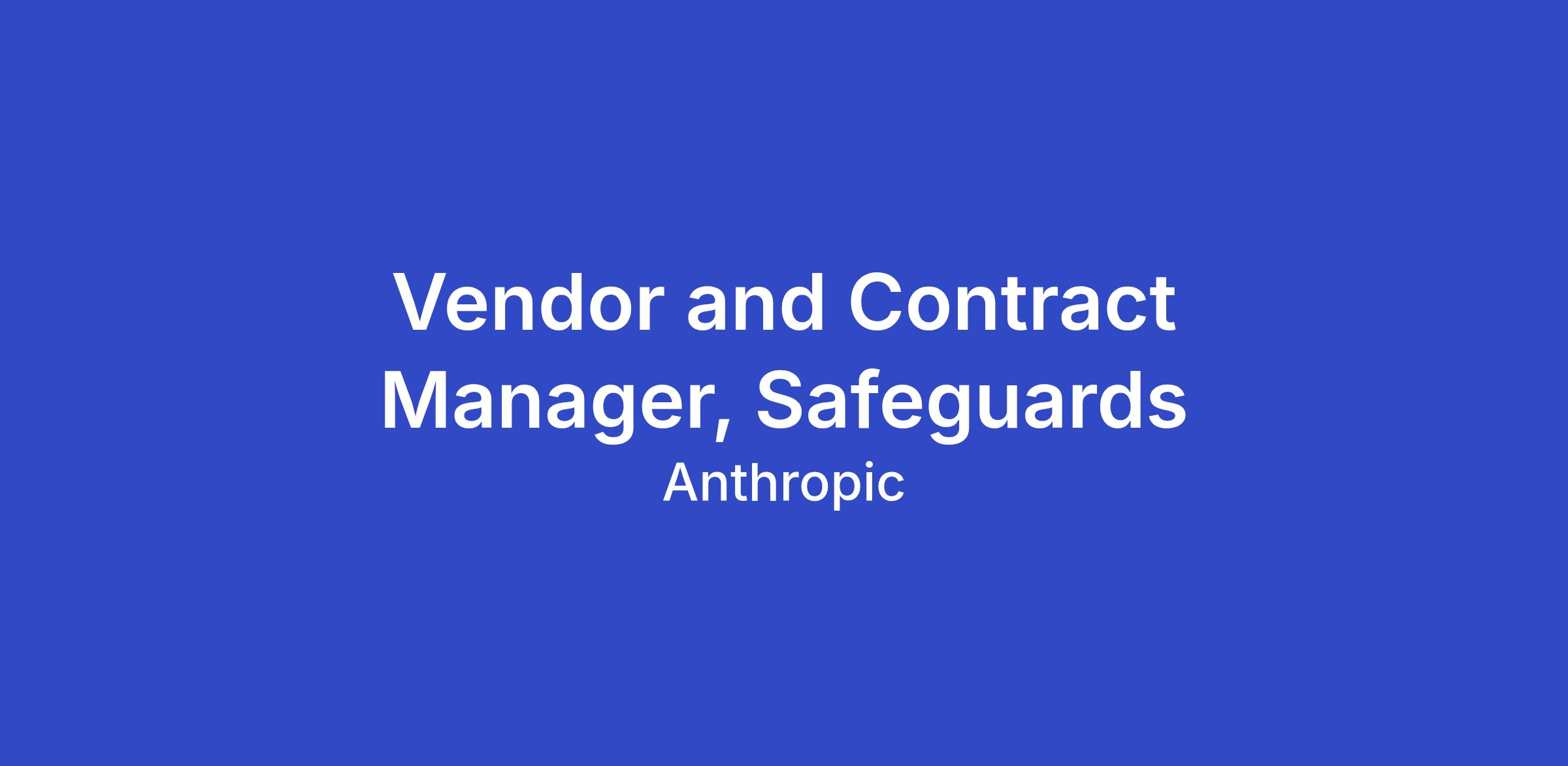 As the Vendor and Contract Manager on the Safeguards team, you will own the end-to-end lifecycle of Anthropic's safety-critical vendor, partner, and consultant relationships — from identifying and selecting vendors through contract negotiation, onboarding, ongoing performance management, and renewal. The vendors and partners you'll manage span verification, threat intelligence, process outsourcing, capability evaluation, civil society consultation, and research collaboration.