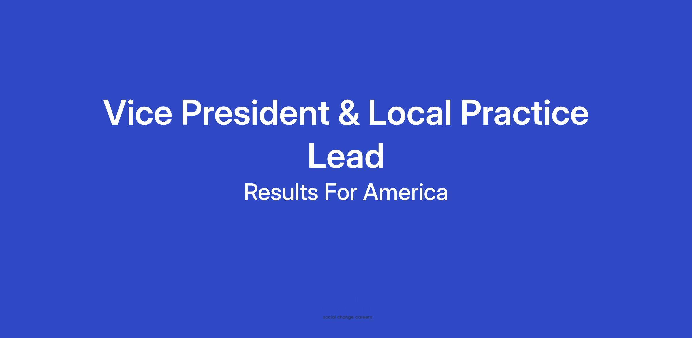 The Vice President and Local Practice Lead is specifically accountable for helping RFA meet its local goals of shifting government dollars toward what works, replicating effective solutions, and building evidence/data capacity so that local governments can make better decisions for decades to come.